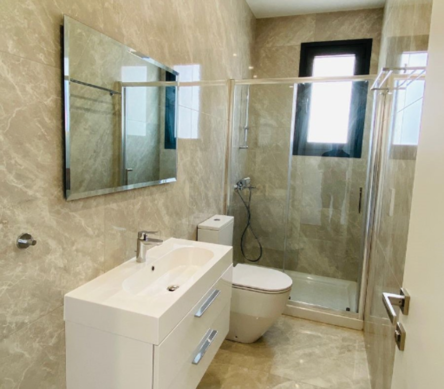 В апартаментах три просторные спальни с электрическими ставнями, три современных ванных комнаты и три туалета. Жилая зона дополняется полностью оборудованной кухней и большой элегантной гостиной. Среди дополнительных преимуществ — подогрев пола, кондиционирование и энергетический сертификат класса A.