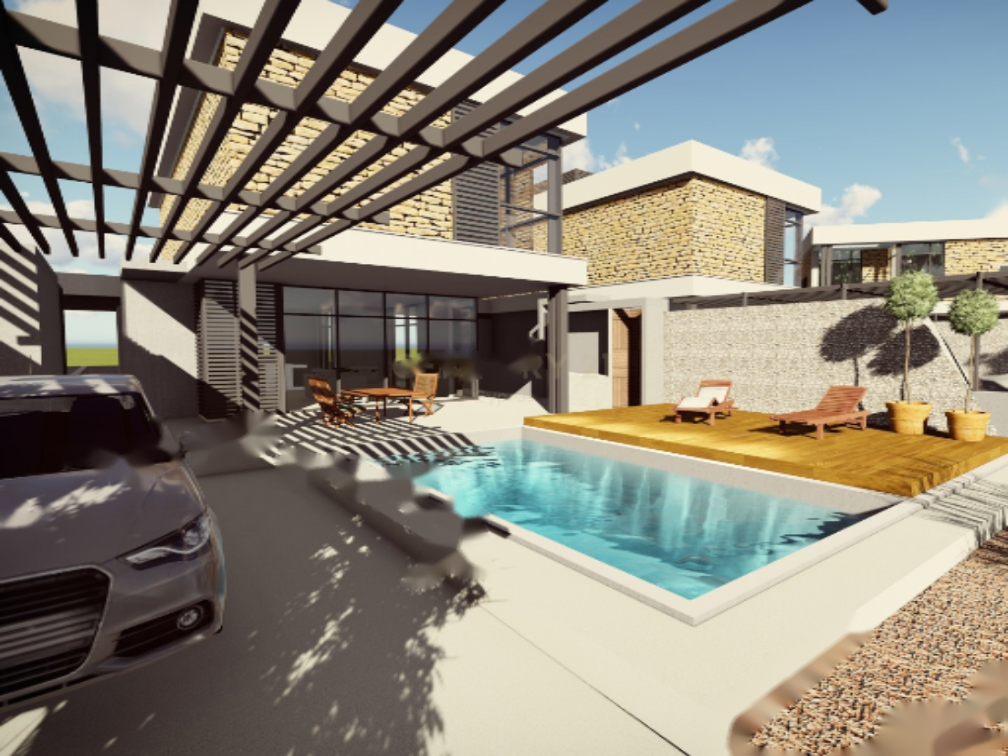 Вилла имеет внутреннюю площадь 153 кв.м на участке 361 кв.м. Ее дизайн искусно сочетает средиземноморский стиль с традиционной кипрской архитектурой и современными элементами, создавая резиденцию, которая излучает вкус, качество и стиль.