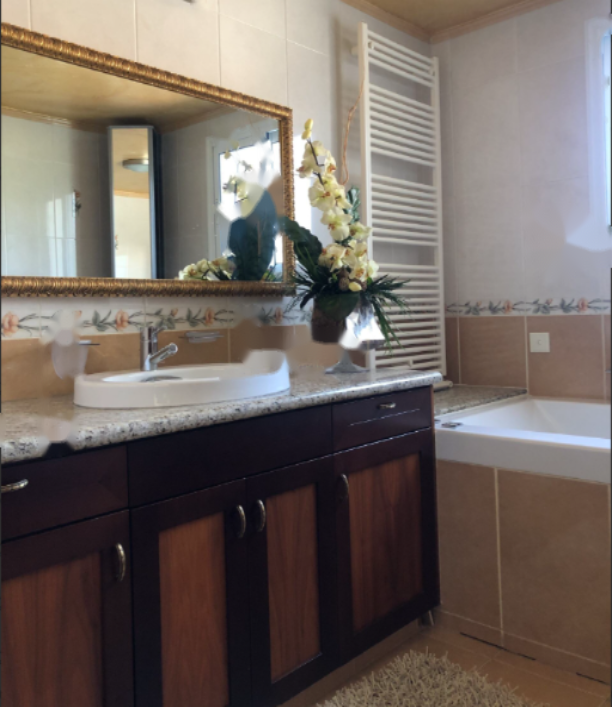 Вилла располагает частным бассейном, джакузи, сауной и душевой кабиной с гидромассажем, что делает её прекрасным местом для отдыха и релаксации. На улице вы найдёте красиво оформленный сад, зону для барбекю и санузел с душем у бассейна.