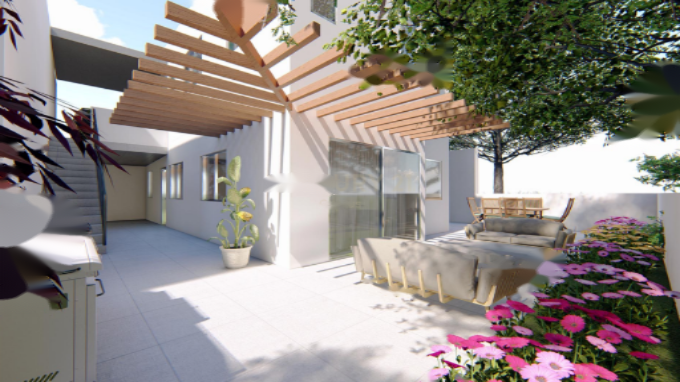Дом включает 3 просторные спальни, 3 современные ванные комнаты, а также закрытое парковочное место на один автомобиль. Он спроектирован с учетом энергоэффективности и имеет сертификат энергетической эффективности класса A.