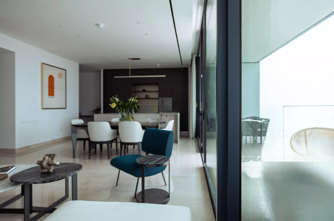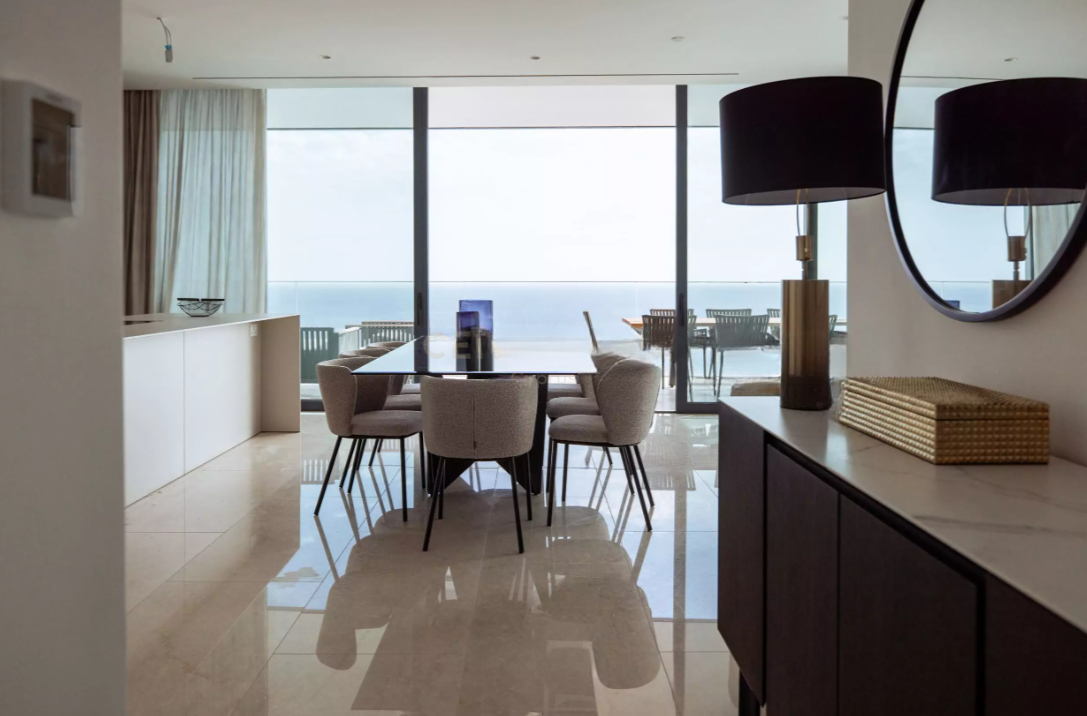 Жилье оснащено кондиционерами, окнами с двойным стеклом и имеет высокий класс энергоэффективности A+. Интерьер выполнен с элегантной отделкой, использованием плитки и мрамора.