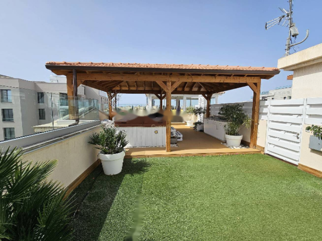 Роскошная квартира обладает просторным частным садом на крыше, предлагая великолепный открытый образ жизни. Здесь находятся джакузи, три перголы, зона для обедов и барбекю, а также система автоматического полива.