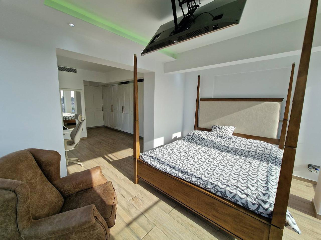 В объекте 3 спальни, включая мастер-сьют с дополнительным местом для хранения одежды, 3 ванные комнаты, а также стильная открытая гостиная и кухня с уникальной планировкой. Оснащен умной системой управления домом и системой кондиционирования VRF.