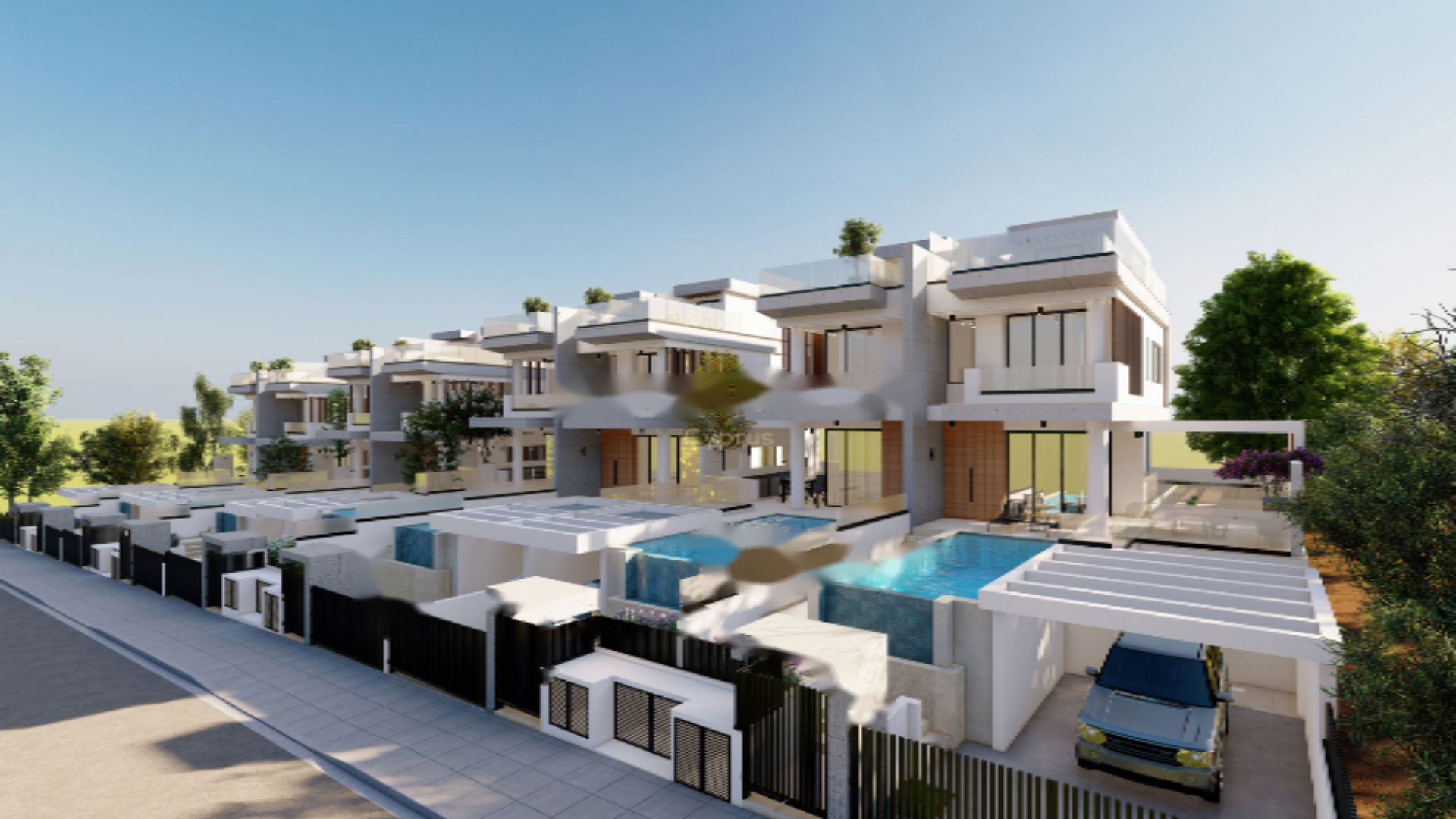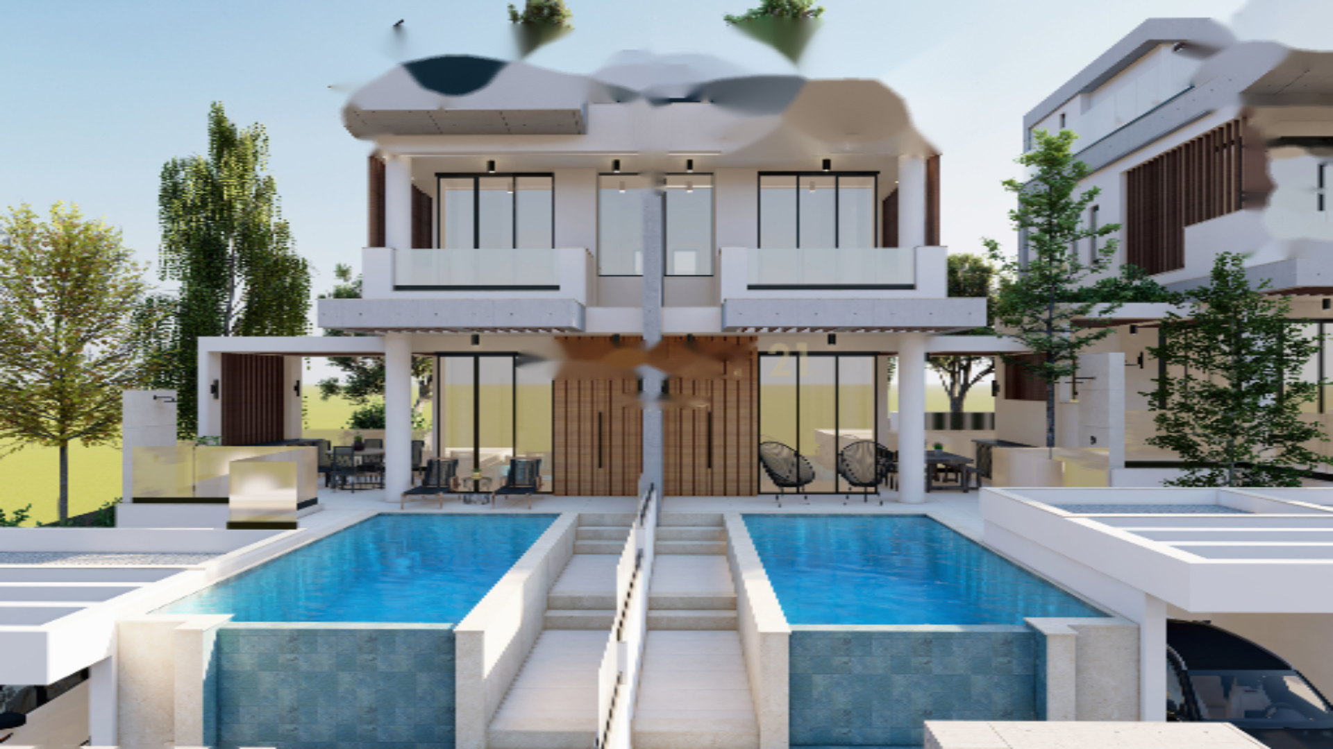 Вилла на продажу в Хлоракас, предлагающая 219.40 кв.м. внутренней площади на участке 270 кв.м. Находится в стадии строительства, включает 5 спален, 6 ванных комнат и закрытое парковочное место. Вилла также имеет 41.10 кв.м. крытых веранд и 122.90 кв.м. открытых веранд. Интерьер оформлен плиткой и двойным остеклением, вилла имеет энергетический сертификат A.