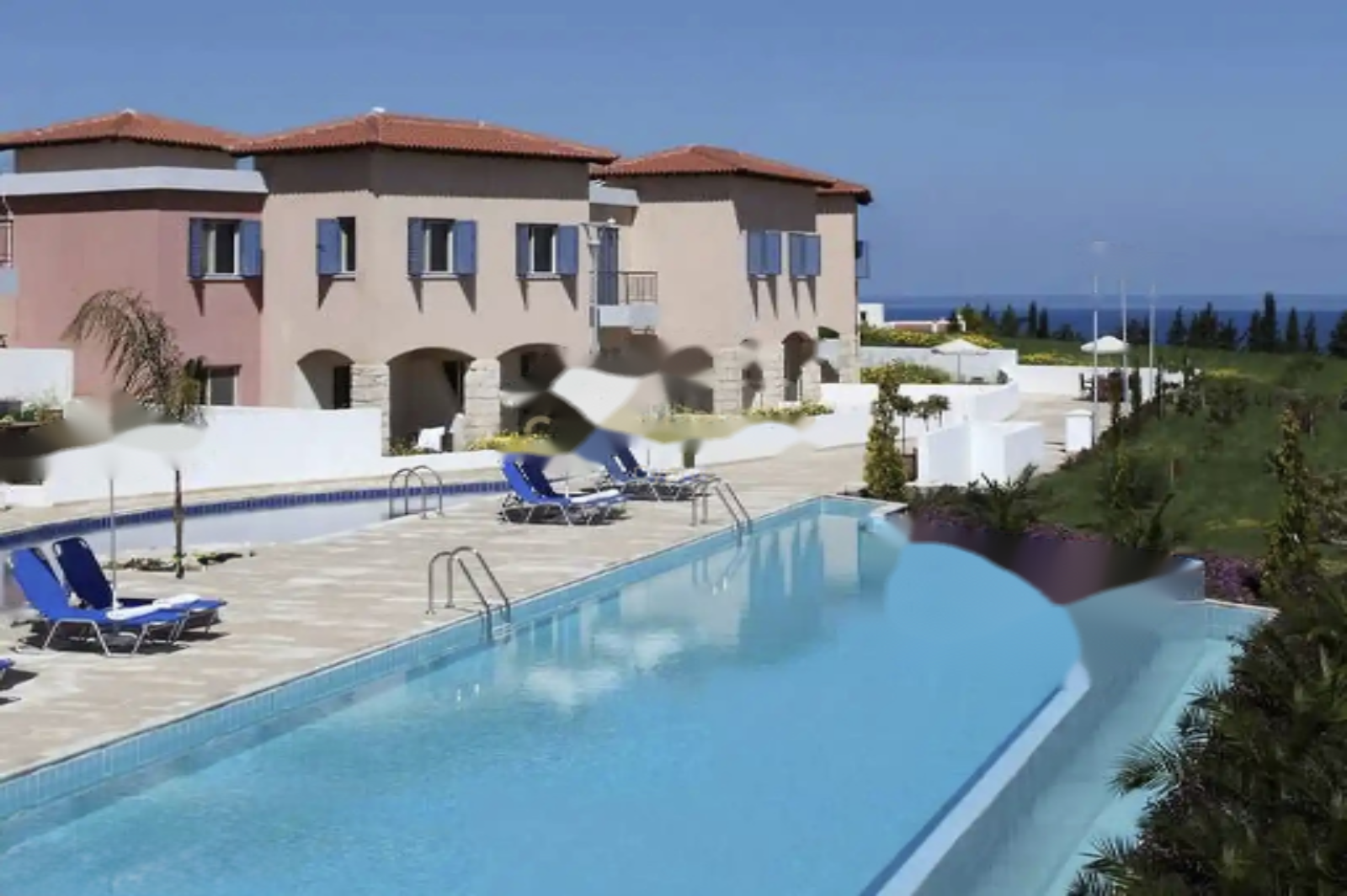 Удобства комплекса включают два больших плавательных бассейна, вымощенный внутренний дворик у бассейна, идеально подходящий для отдыха или встреч, и обширные зеленые зоны для наслаждения на открытом воздухе.