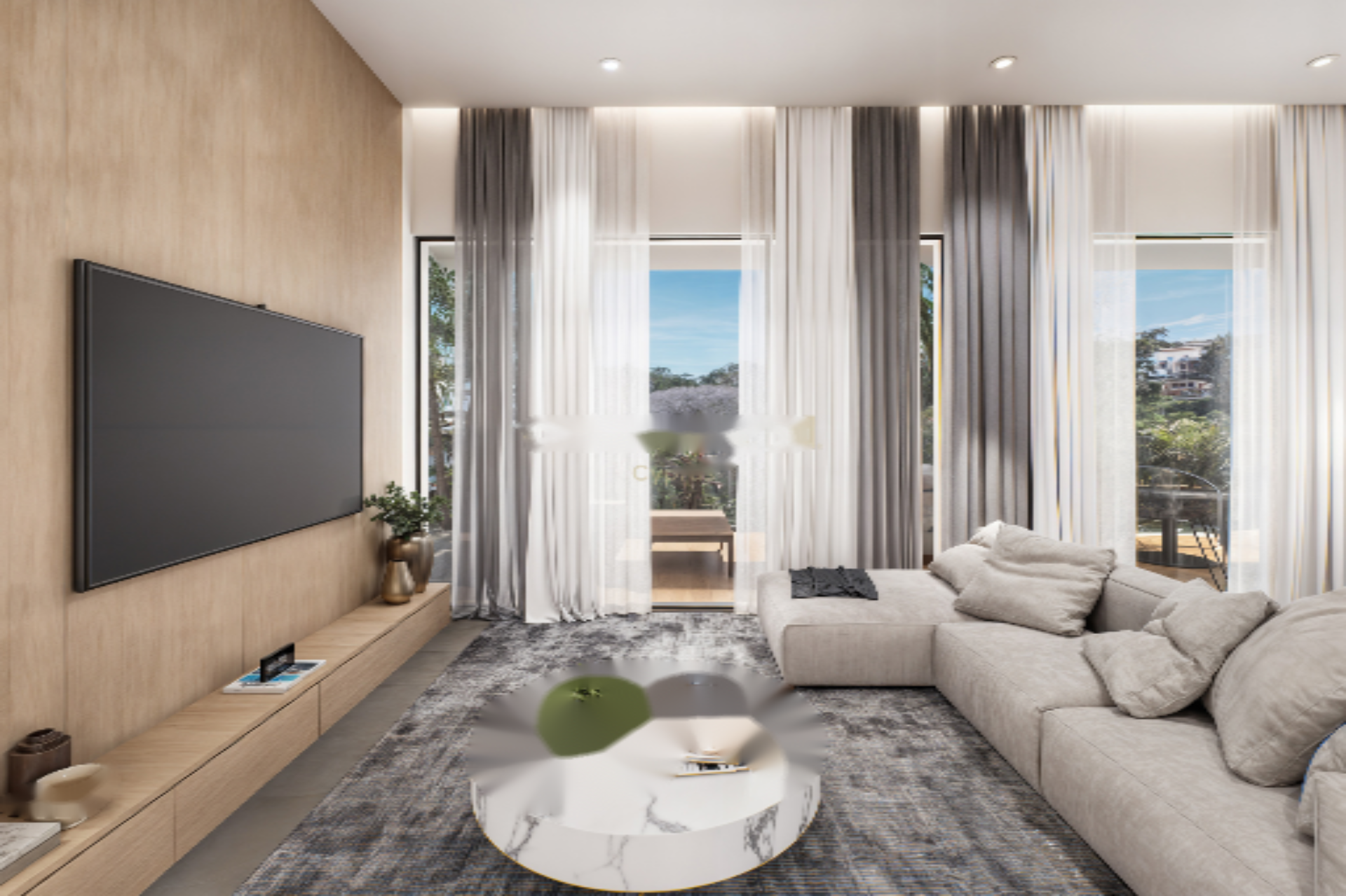 Комфорт обеспечивается системой кондиционирования и плиточными полами. ️ Жителям предлагаются потрясающие виды на город и доступ к ряду элитных общих удобств, включая бассейн, спортзал и благоустроенные территории. Дополнительные особенности включают видео-домофон, лифт, кладовую, технологии "умного дома" и ворота на дистанционном управлении, обеспечивающие удобство и безопасность.