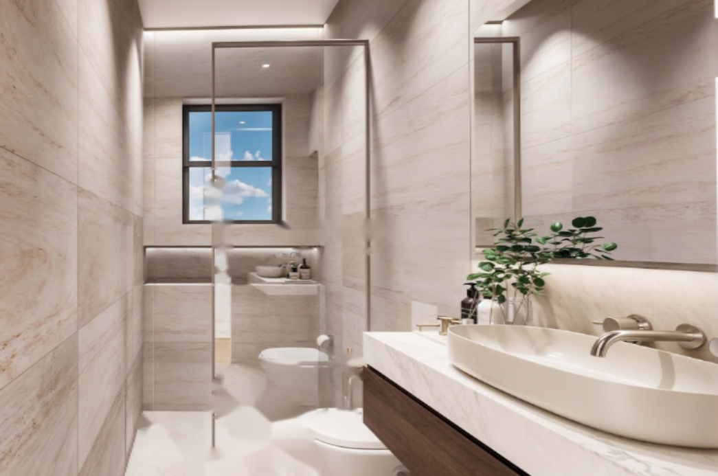 Квартира спроектирована для вашего комфорта, поэтому оснащена теплым полом, кондиционированием воздуха, алюминиевыми рамами с двойными стеклопакетами и энергоэффективностью класса A. ✨ Полы с плиткой добавляют стильность интерьеру.
