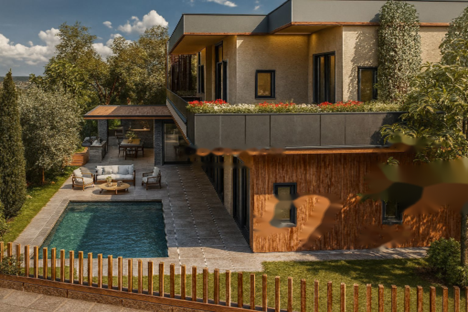 Всего в 4 минутах от пляжа и окруженная зелеными насаждениями, эта вилла предлагает тишину, уединение и отсутствие ближайшего будущего строительства. ↘️ Вилла расположена на угловом участке и включает в себя просторный мастер-люкс, четыре спальни с ванными комнатами, частный спортзал, кабинет, комнату для прислуги и сад на крыше с потрясающими видами.