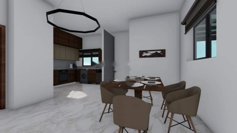 Эти виллы имеют просторную планировку с жилой площадью 188,2 м² на участке 263 м². В главной спальне предусмотрена собственная ванная комната, обеспечивая приватность и комфорт. Элегантные интерьеры с керамической плиткой в общих зонах и ванных комнатах, а также паркетным покрытием в спальнях создают современный уют.