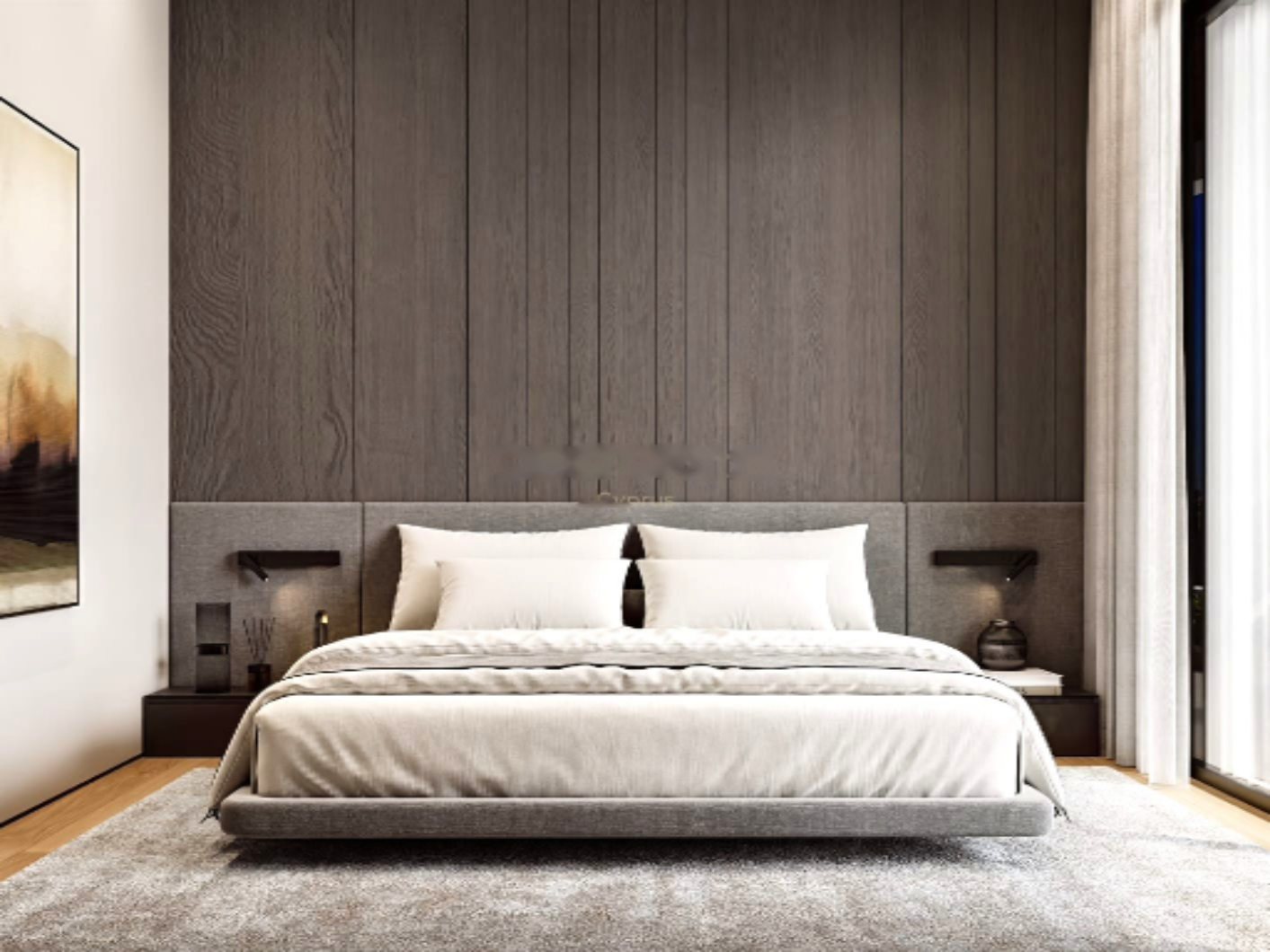 Выполненные в утончённом современном стиле спальни демонстрируют мастерство, заметное по всему этому жилью. Пространство обдуманно спланировано, чтобы максимально использовать каждый квадратный метр, предлагая уютный уголок для отдыха в конце дня.