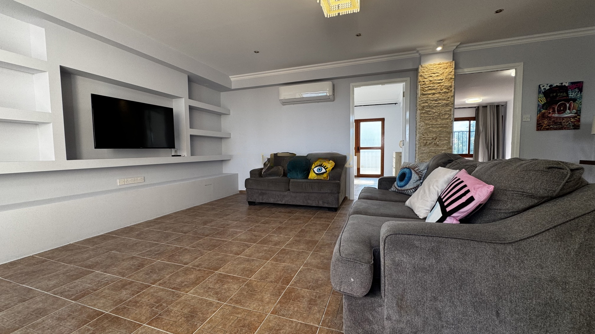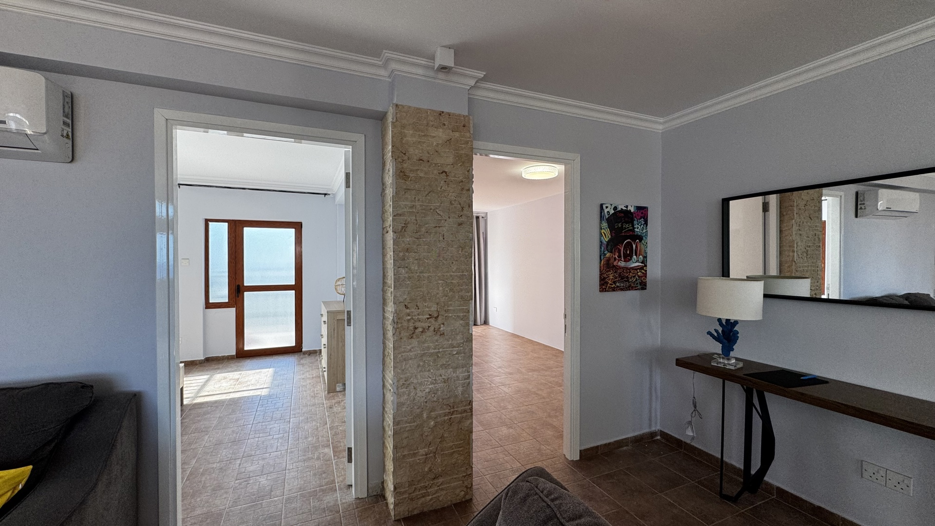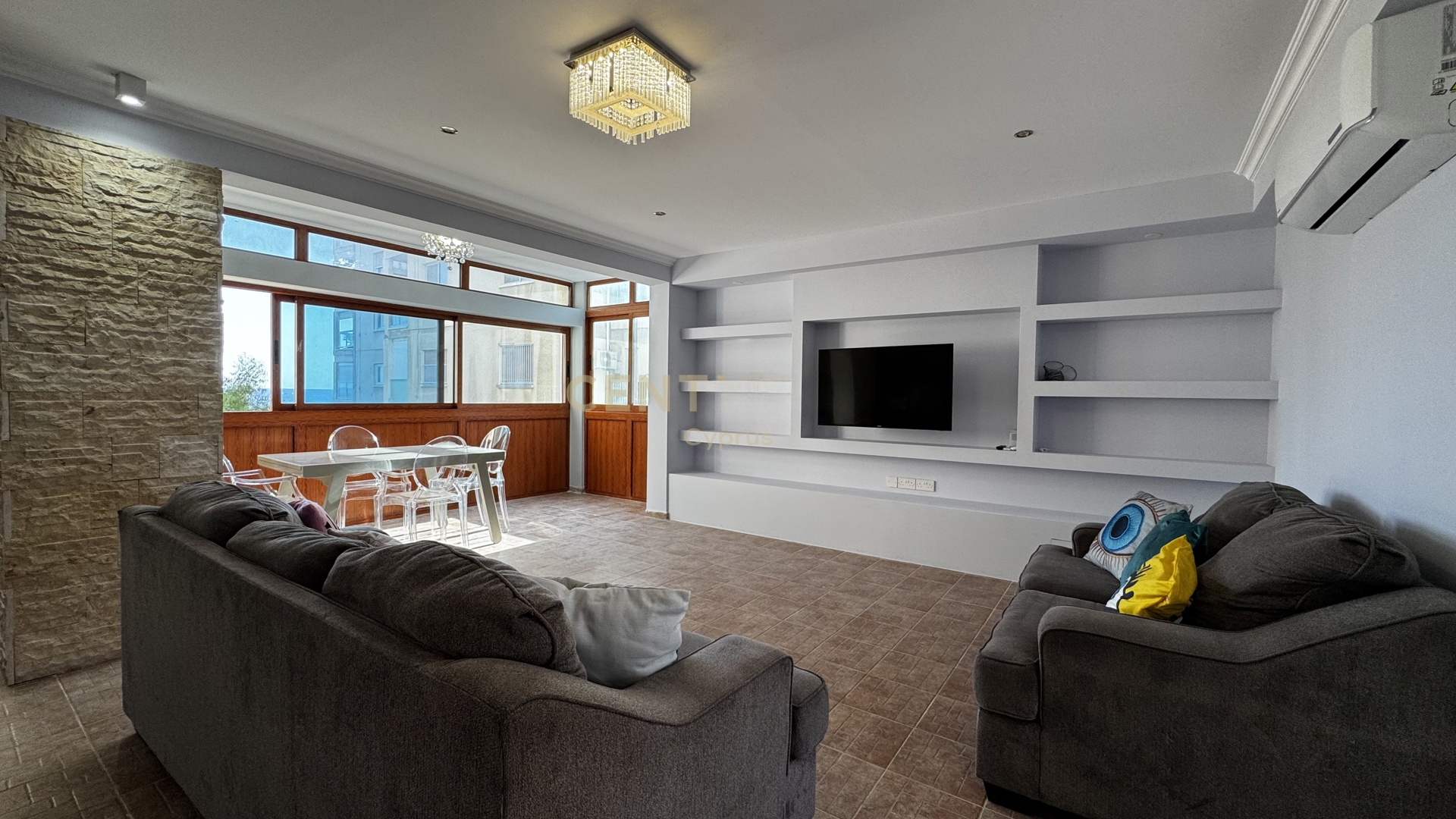 Будьте первыми, кто насладится этим полностью обновленным домом с новой мебелью, электротехникой и встроенными шкафами. 2 просторные спальни с новыми шкафами, выполненными на заказ. Полностью обновленный дизайн с современными элементами и высококачественной отделкой. Новая электротехника, включая большой холодильник. Кондиционеры установлены в каждой комнате. Идеально подходит для тех, кто ценит море, спокойствие и изысканную жизнь. Находится в тихом жилом здании с непрерывным панорамным видом на море.