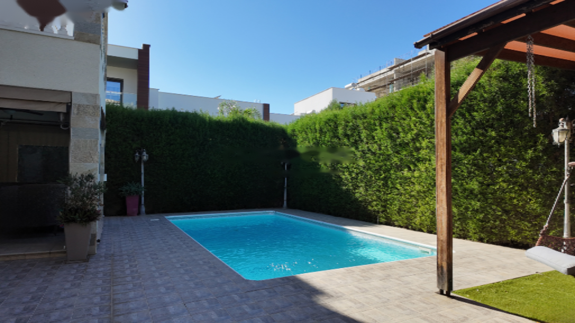 Особые удобства включают в себя частный плавательный бассейн, сауну для расслабления, домашний кинотеатр для эксклюзивных развлечений и зону для барбекю с ландшафтным садом. Вилла также включает в себя сигнальную систему безопасности и предоставляет панорамные виды на море и город.