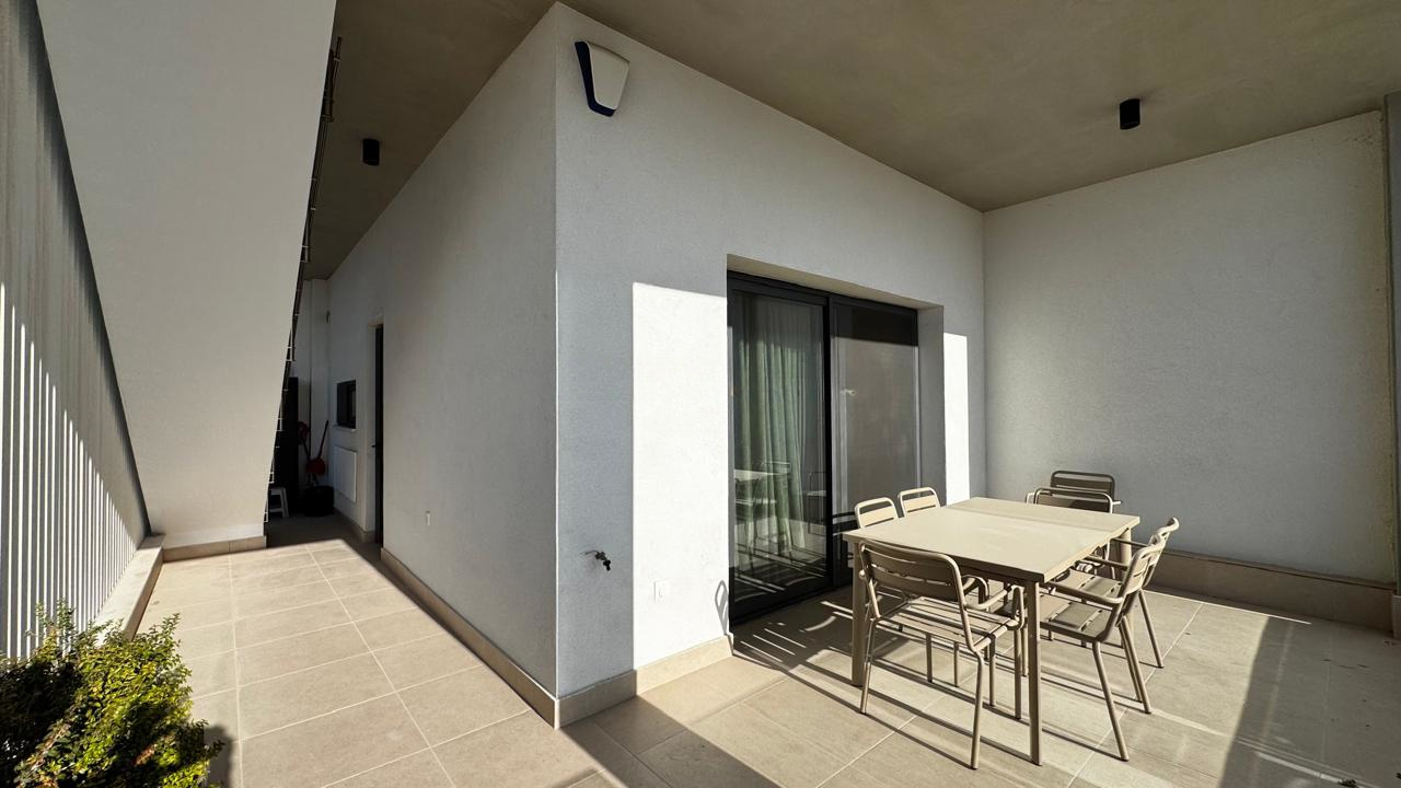 Общая площадь составляет 184 м², из которых 96 м² — внутренняя площадь, и имеется крытая веранда площадью 33 м². Квартира введена в эксплуатацию в январе 2024 года. Планировка включает 3 + 1 спальни, две из которых оборудованы индивидуальными ванными комнатами, а также крытую веранду и частный сад на крыше.