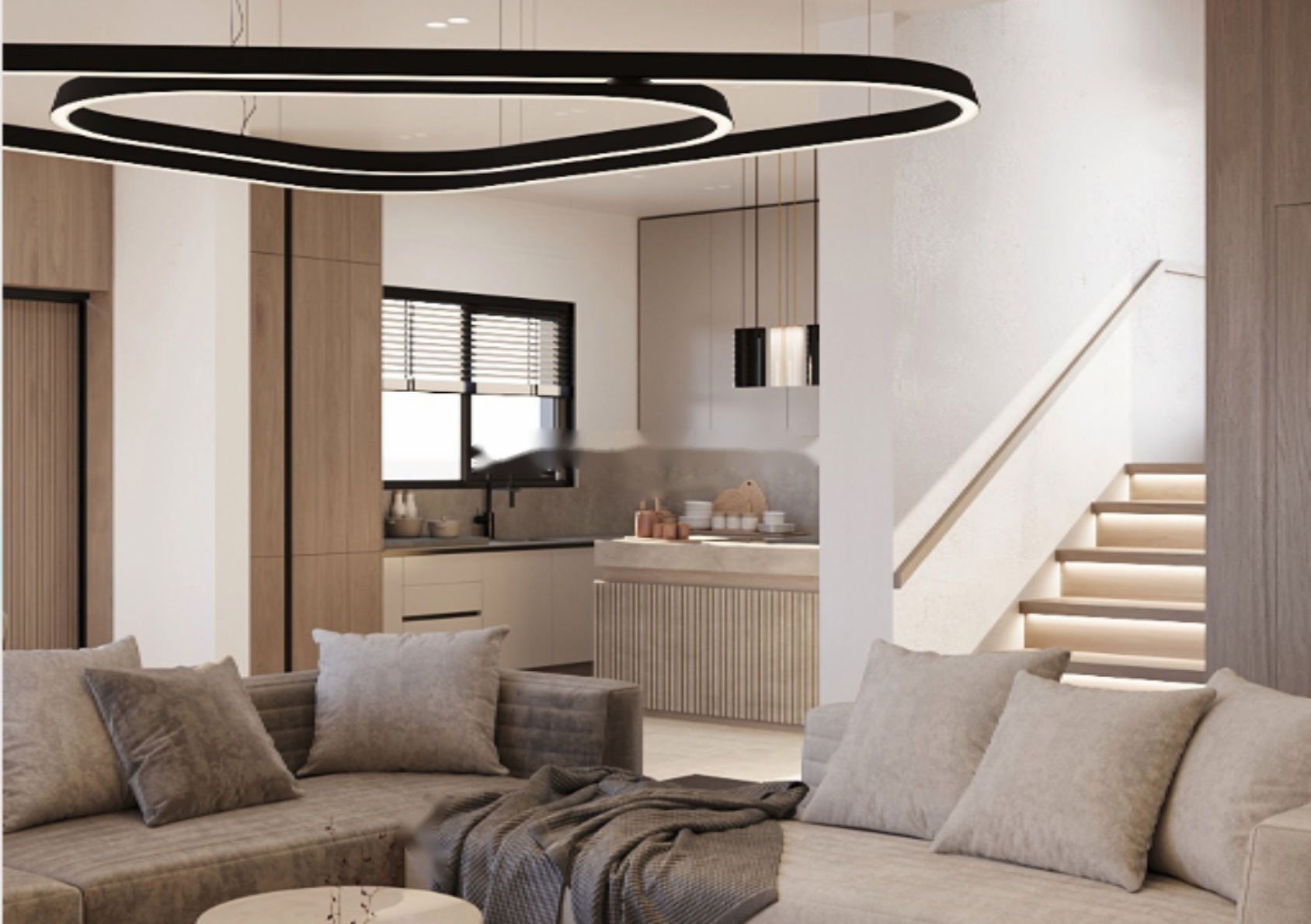 Дом впечатляет площадью в 204 кв.м. В нем четыре спальни, одна из которых расположена на первом этаже, и все они с отдельными ванными комнатами. Высокий потолок в гостиной создает драматичную и просторную атмосферу, а на всем первом этаже — повышенные потолки. Кухня и гостиная объединены в открытую планировку с качественными премиальными отделками.