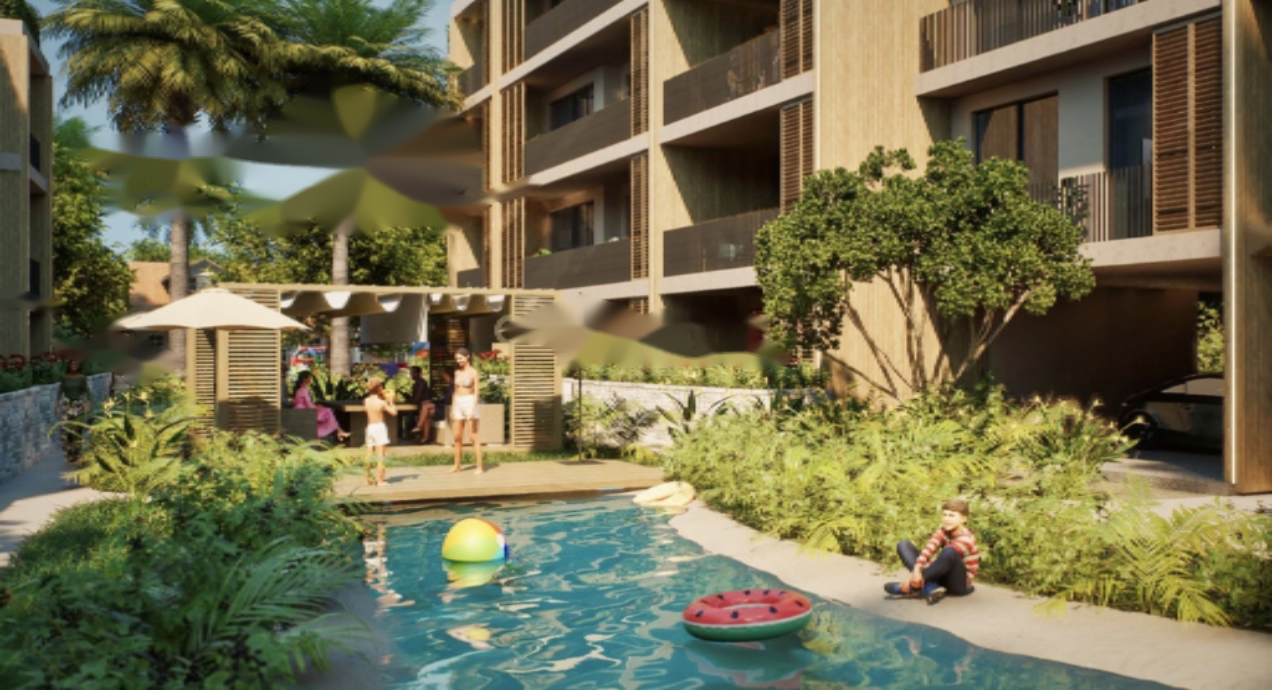 Этот энергоэффективный проект обогащён великолепными удобствами для образа жизни: сверкающие бассейны окружены пышной зеленью, фитнес-центр с видом на сад создаёт вдохновляющую атмосферу для тренировок, ухоженные тропические сады и игровые площадки для детей обеспечивают безопасность и уверенность родителей, выделенная частная парковка и профессиональное управление объектами аренды обеспечивает комфортное проживание.