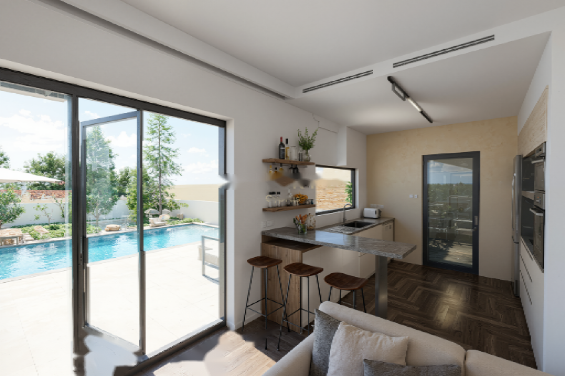Современный дом в стадии строительства, расположенный в спокойном и востребованном районе Суни . Продуманный для комфортной семейной жизни, дом сочетает в себе современные архитектурные решения с функциональными внутренними и наружными пространствами, включая красивый бассейн.