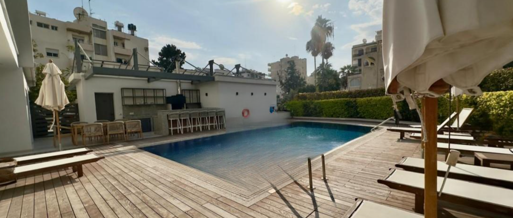 В комплексе есть общий бассейн, тренажерный зал и ухоженный сад с зоной для барбекю. Это охраняемый комплекс в тихом районе с быстрым доступом в интернет.