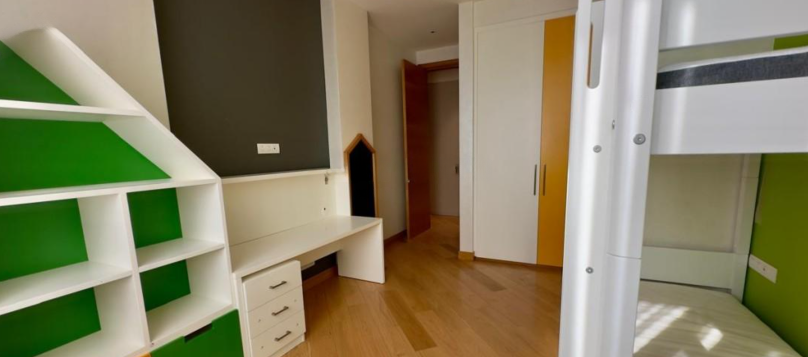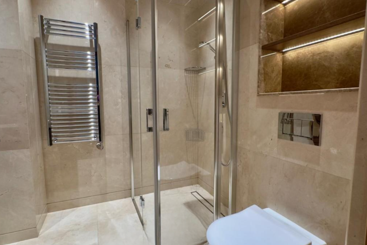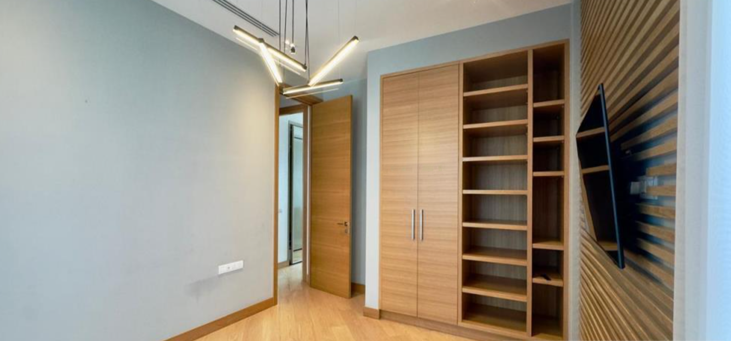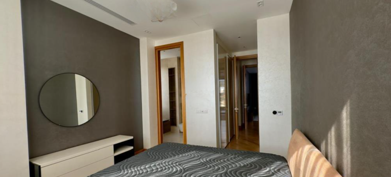 В квартире просторная жилая площадь в 125 кв.м., три спальни, каждая с качественным паркетом, и две современные ванные комнаты. Она полностью меблирована и готова к заселению. Для удобства предусмотрено крытое парковочное место и кладовая.