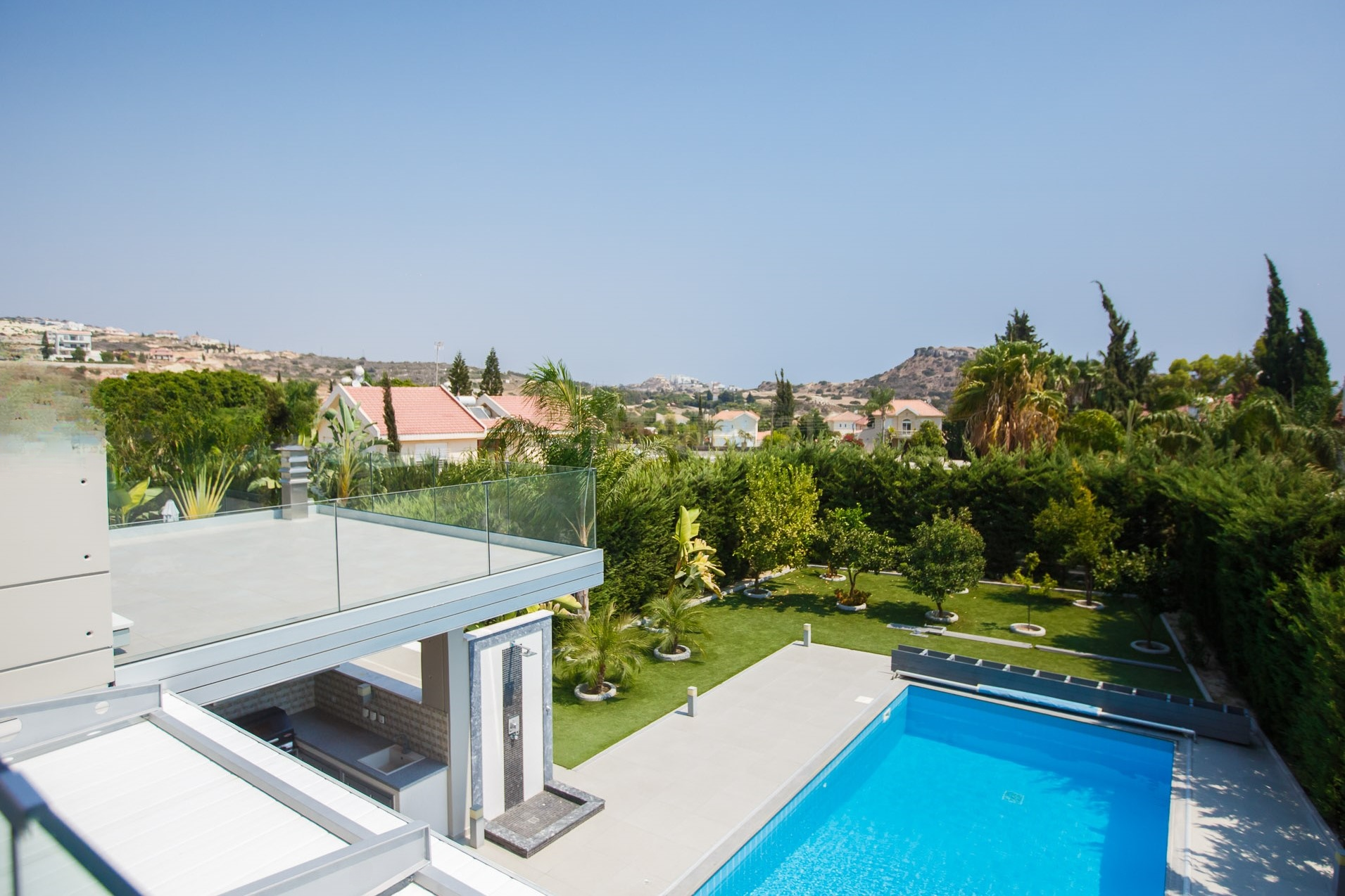 Особое внимание уделено безопасности: вилла оборудована системой умного дома с автоматизацией, а также охранной сигнализацией и видеонаблюдением. Для развлечения гостей предусмотрен подогреваемый бассейн с соленой водой и интегрированным джакузи, а также зрелый сад с крытой зоной барбекю.