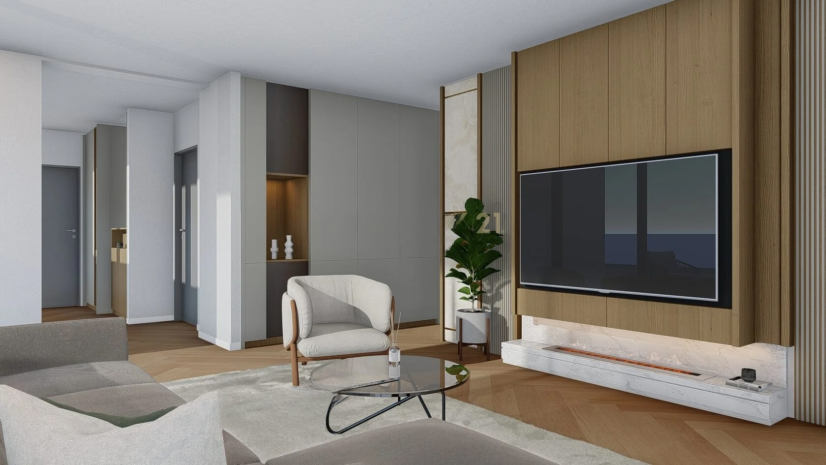 Все квартиры имеют современный дизайн, функциональные планировки, просторные спальни, отделку высокого качества и пол с подогревом для комфортного проживания круглый год.