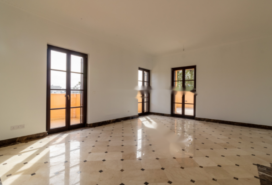 Квартира оборудована системой "умный дом", теплым полом и кондиционерами VRV. Полы в гостиной и спальнях выполнены из качественного мрамора, гранита с мозаикой и деревянного паркета. Включает место для парковки и кладовую. Ухоженные сады окружают всю территорию.