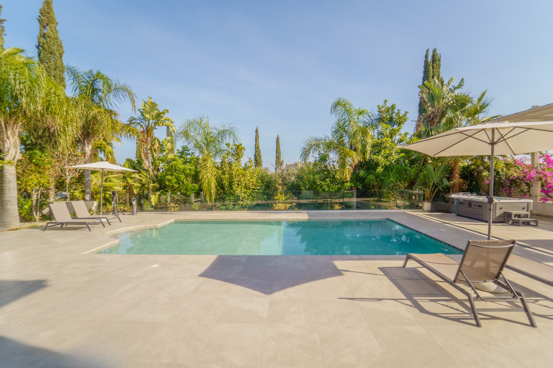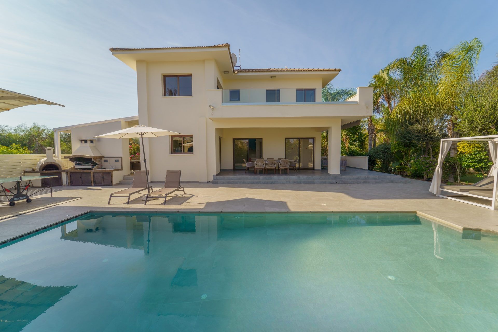 Дом расположен на огромном участке с частным бассейном, зоной барбекю, оборудованной традиционной кипрской печью, и джакузи на улице.