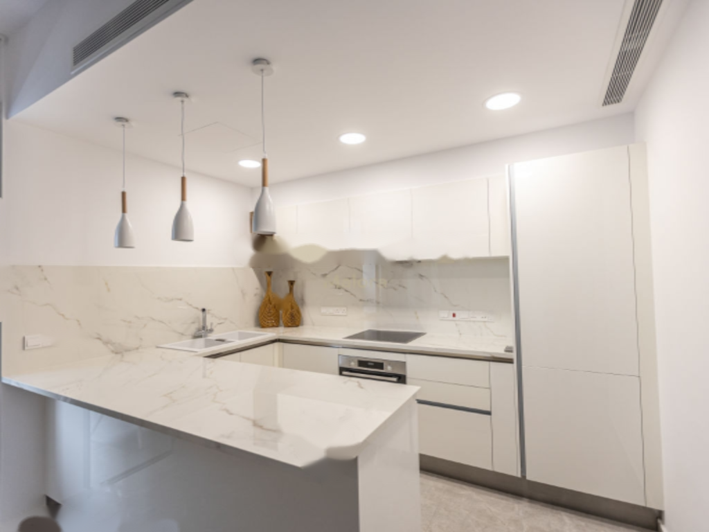 Огороженная территория с ландшафтным дизайном делает апартаменты идеальными для семей. В комплексе также имеется впечатляющий общий бассейн, что особенно актуально в жаркое лето на Кипре. Апартаменты полностью меблированы и обладают просторными жилыми зонами с высокими потолками, что делает проживание максимально комфортным. Кухни и ванные комнаты оснащены самыми изысканными и дорогими материалами, а интерьер всей квартиры можно назвать — великолепным.
