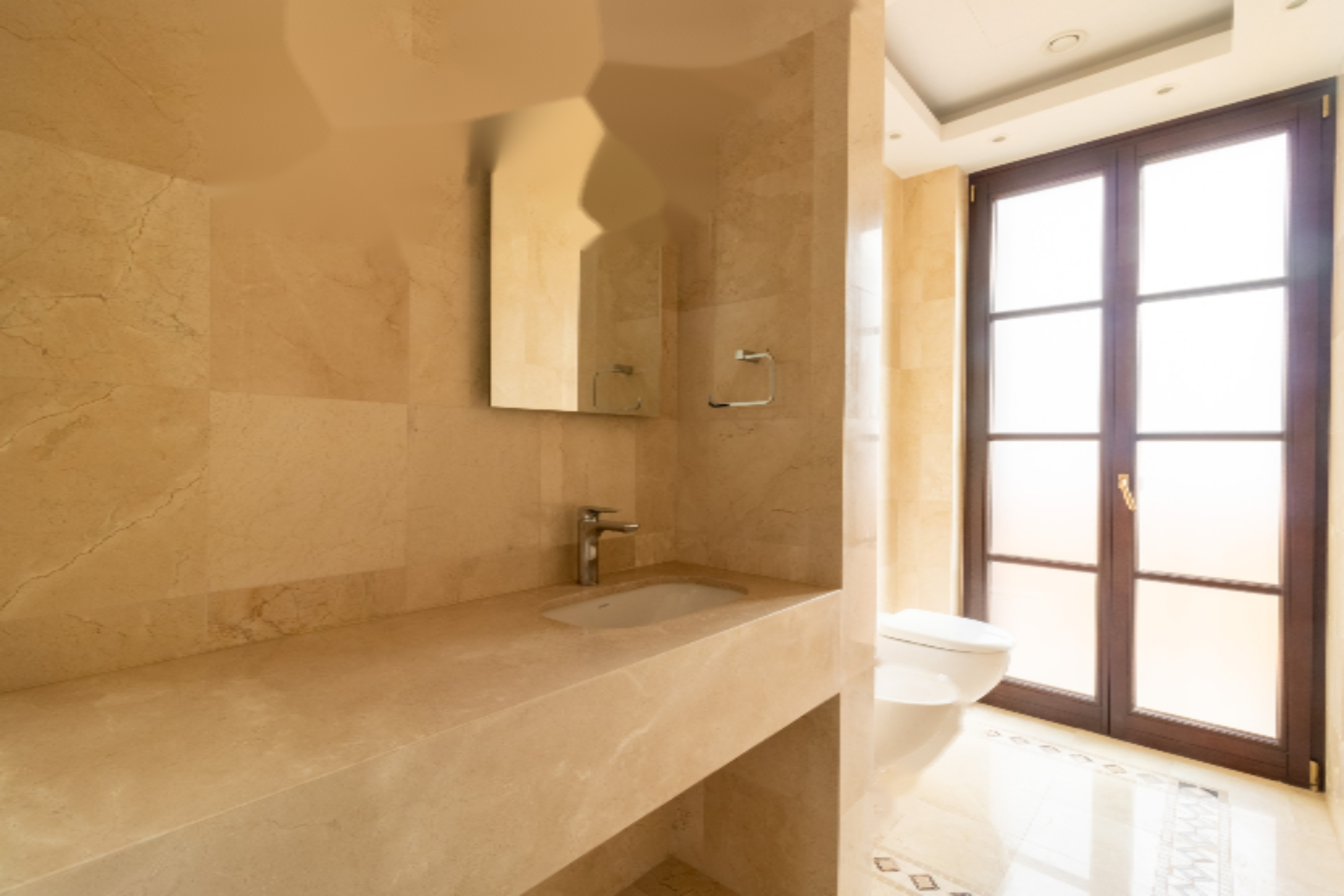 Здание состоит из пяти просторных апартаментов с тремя и четырьмя спальнями. В центре комплекса находятся общий бассейн, фитнес-зал и сауна. В квартире имеется система умного дома, теплый пол и кондиционирование VRV. Полы в гостиной и спальне выполнены из качественного мрамора, гранита с мозаикой и паркетной доски.