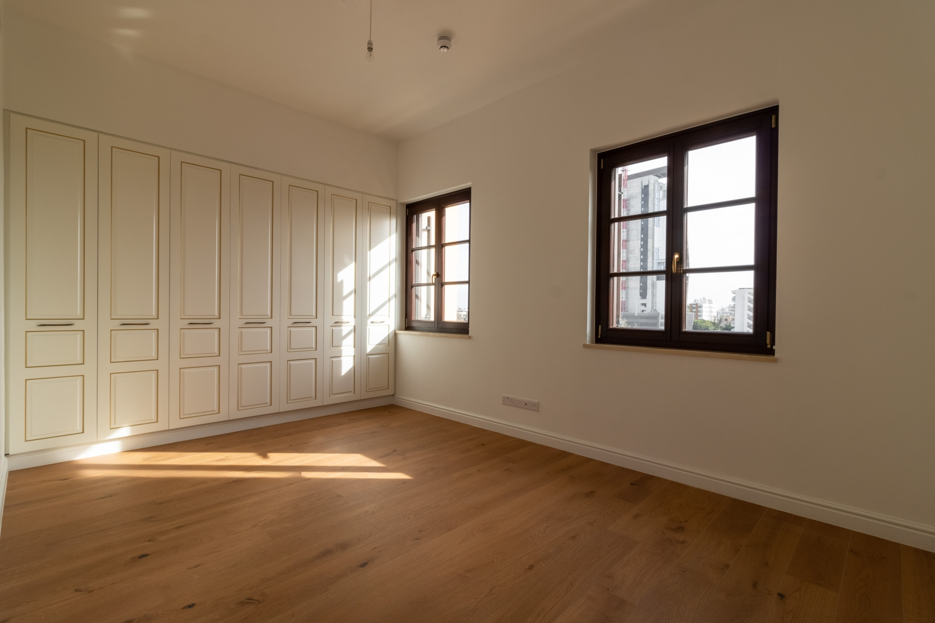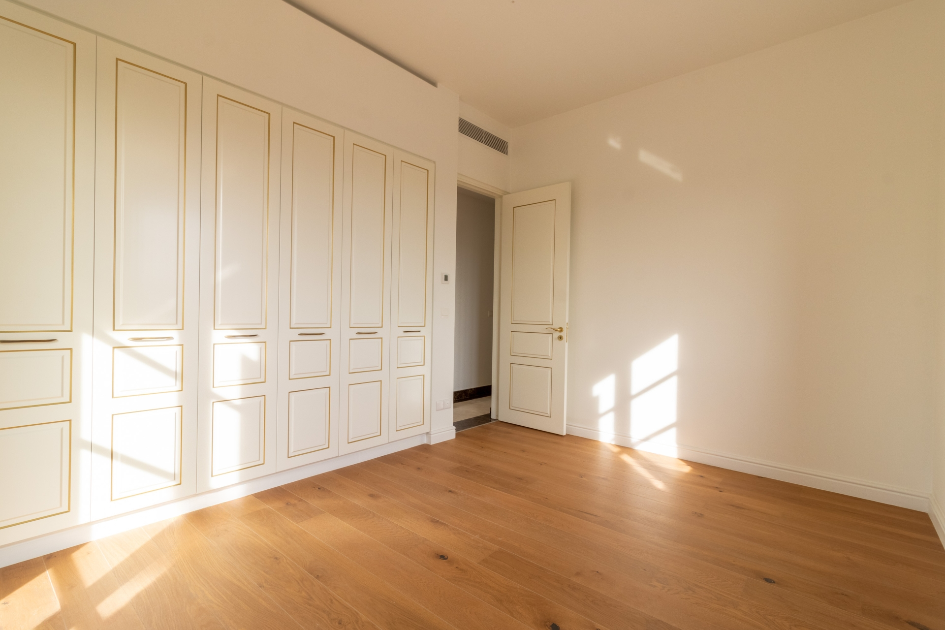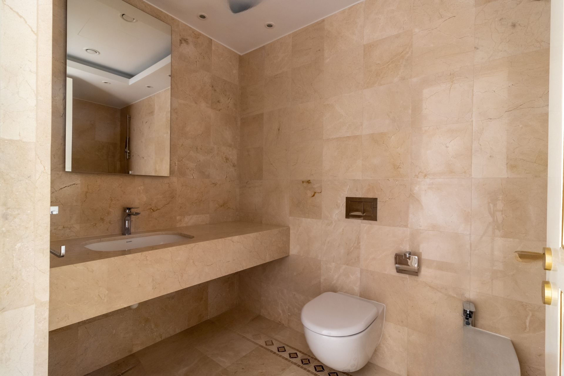 Здание состоит из пяти просторных квартир с 3 и 4 спальнями. В центре комплекса находятся общий бассейн, тренажерный зал и сауна. Квартира оборудована системой умный дом, подогревом пола и кондиционированием VRV. Полы в гостиной и спальне выложены качественным мрамором, гранитом с мозаикой и деревянным паркетом.