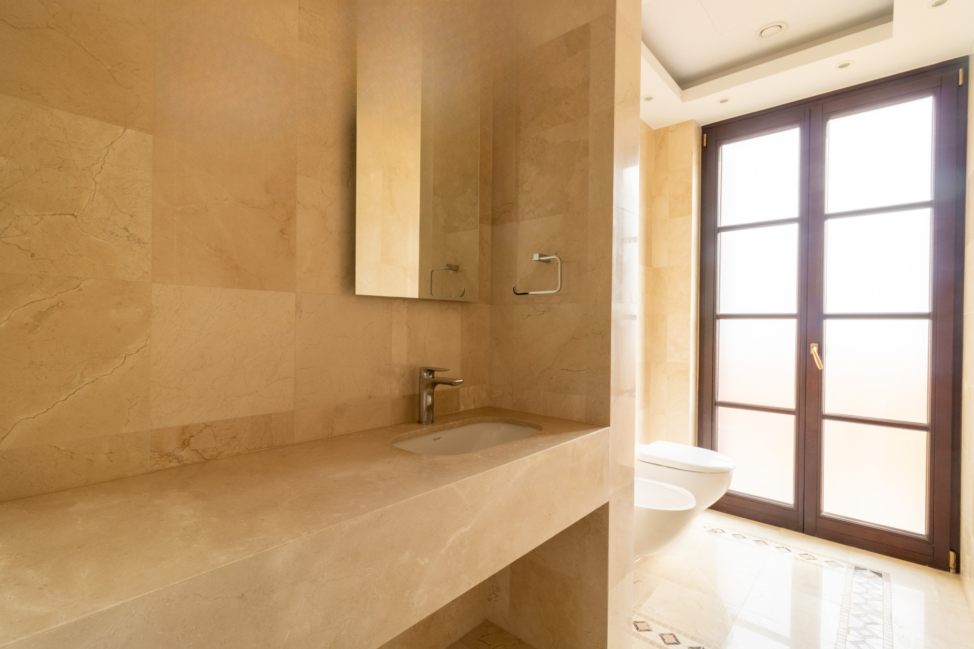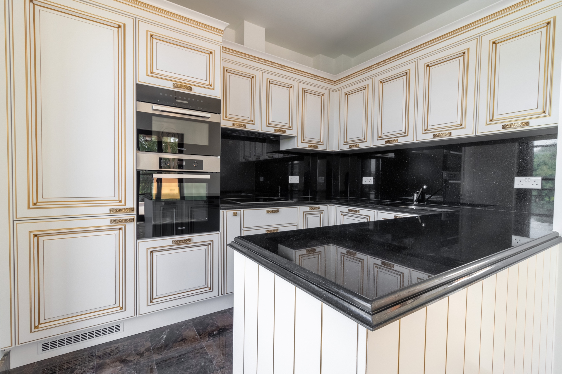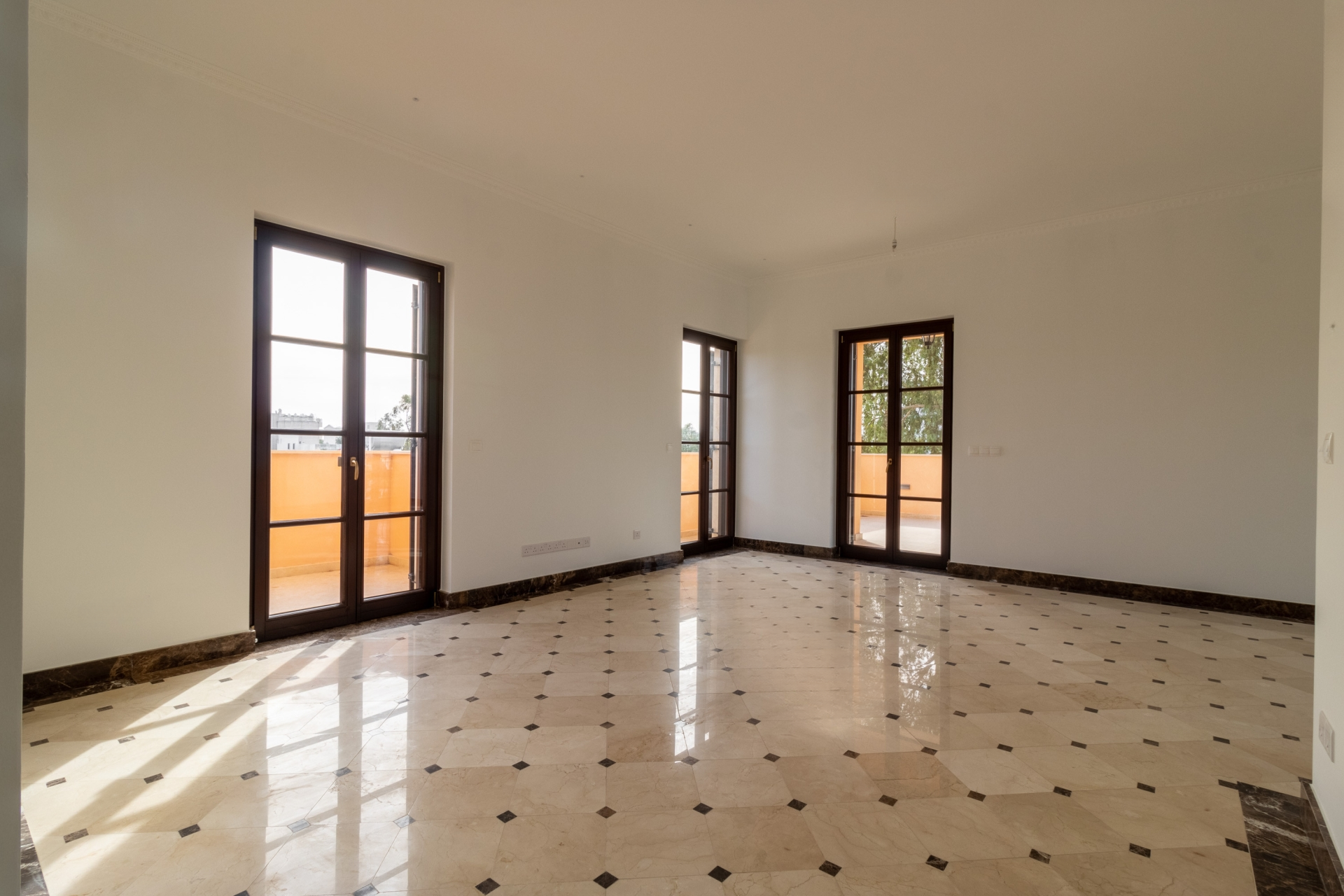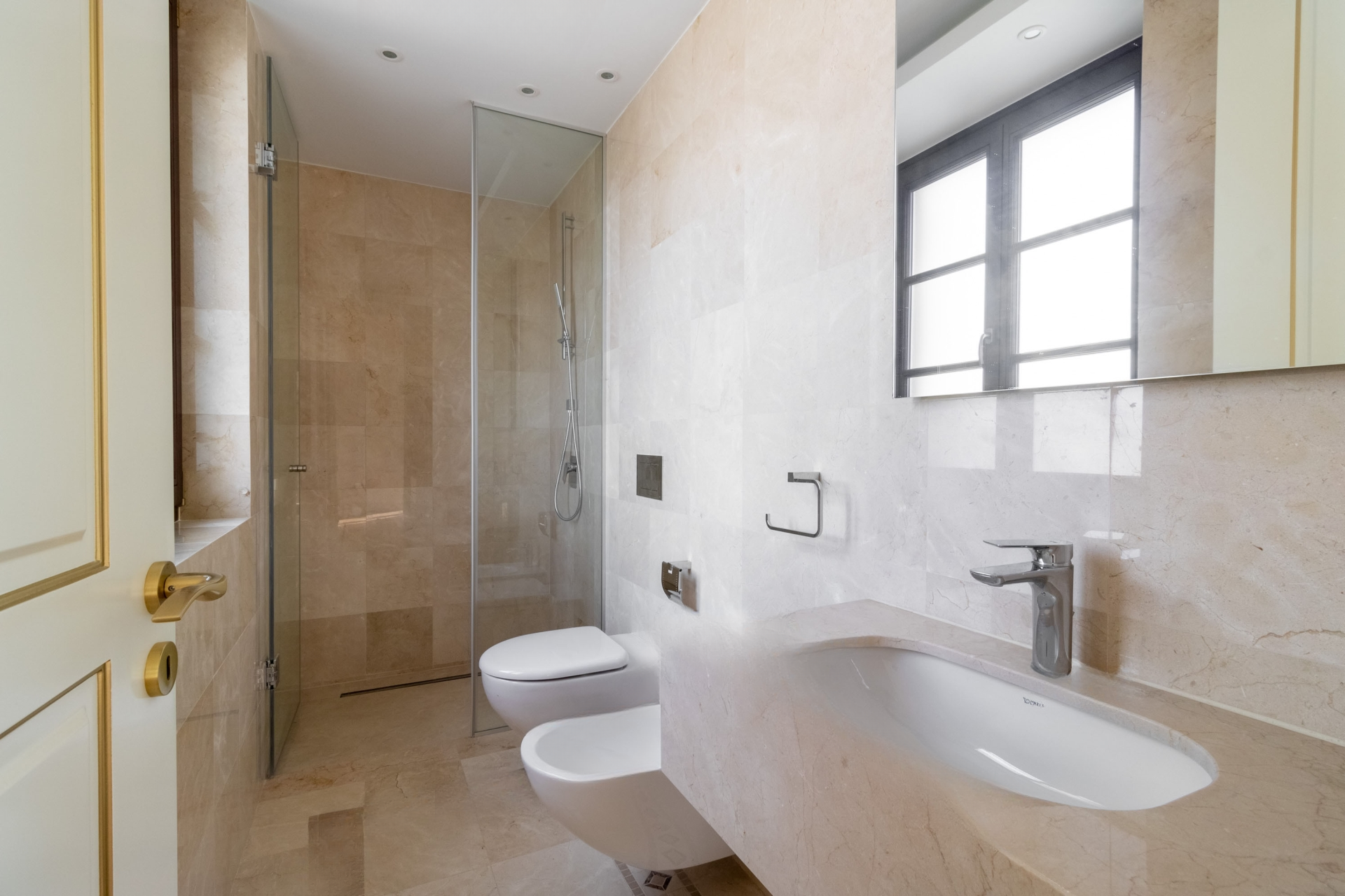 Здание состоит из пяти просторных квартир с 3 и 4 спальнями. В центре комплекса находятся общий бассейн, тренажерный зал и сауна. Квартира оборудована системой умный дом, подогревом пола и кондиционированием VRV. Полы в гостиной и спальне выложены качественным мрамором, гранитом с мозаикой и деревянным паркетом.