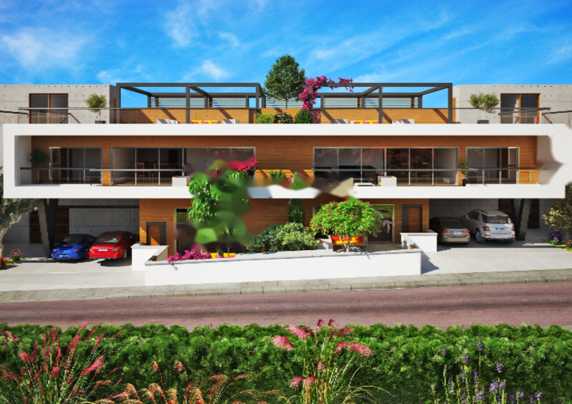 Апартаменты находятся на первом этаже и имеют частный прямой доступ. Личное парковочное место оборудовано системой освещения с датчиками движения. Для обеспечения безопасности жильцов установлены видеодомофон и система видеонаблюдения, а также система пожарной и дымовой сигнализации как в квартире, так и в общих зонах.