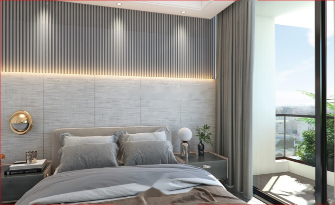 Квартира включает две спальни, две ванные комнаты, гостиную с открытой кухней и крытую веранду. Дизайн выполнен с уважением к окружающей среде, современные и элегантные фасады. Световые инсталляции украшают здание в ночное время.