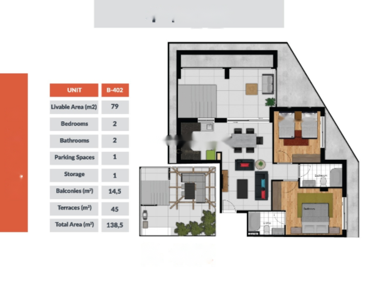 Bedrooms: 2, Bathrooms: 2, Internal Area: 79.20 sq.m.