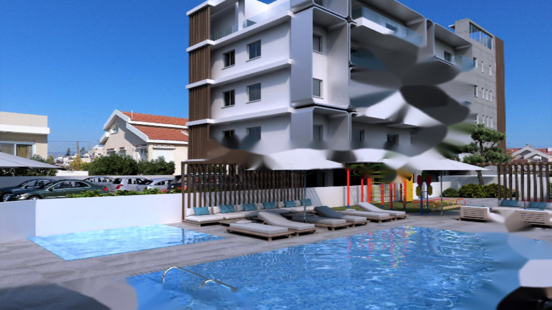 Кроме того, комплекс предлагает общий бассейн и парк, где дети жильцов могут безопасно играть.