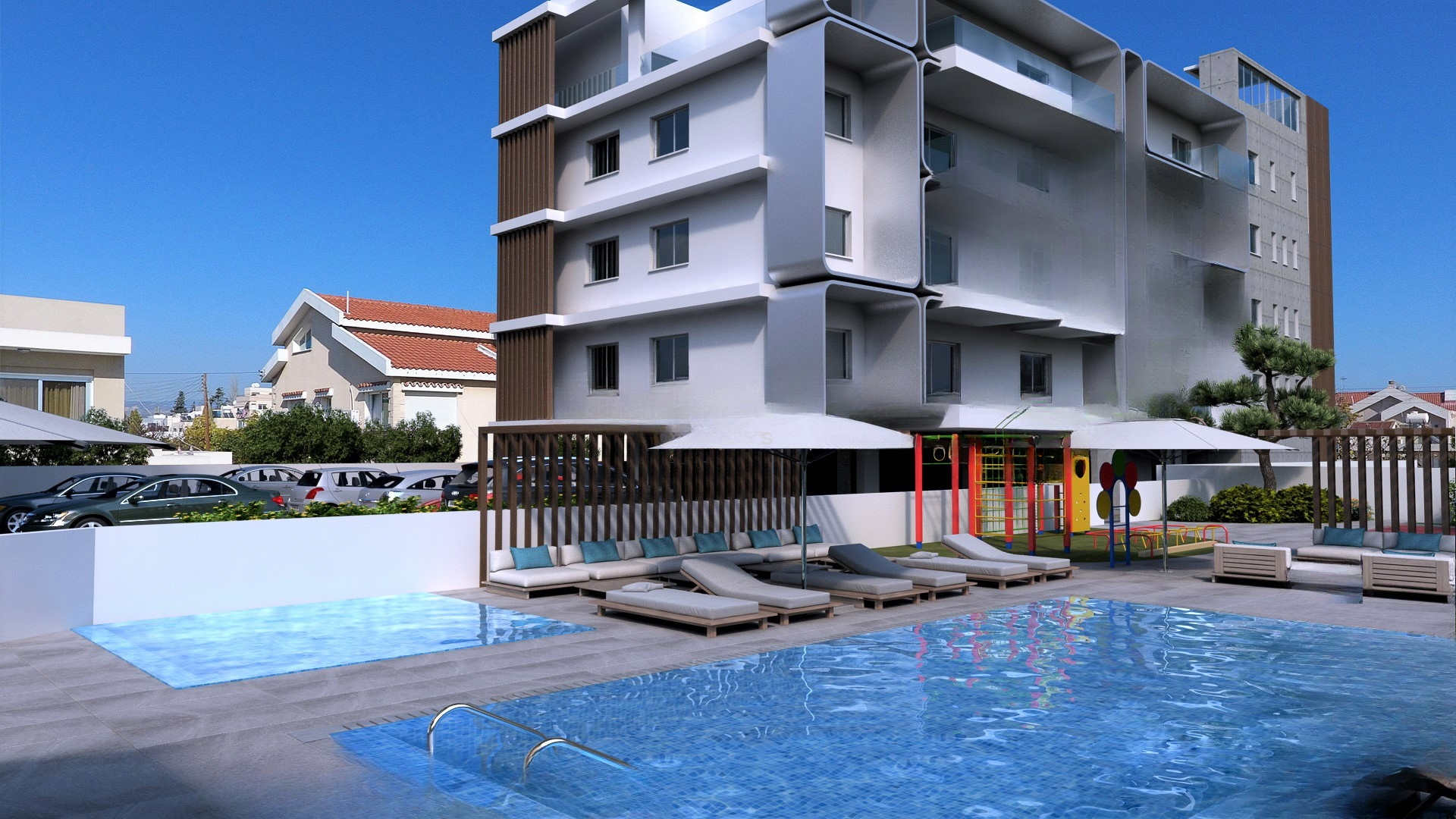 Кроме того, в комплексе имеется общий бассейн и парк, чтобы дети могли безопасно проводить время на свежем воздухе. ♂️