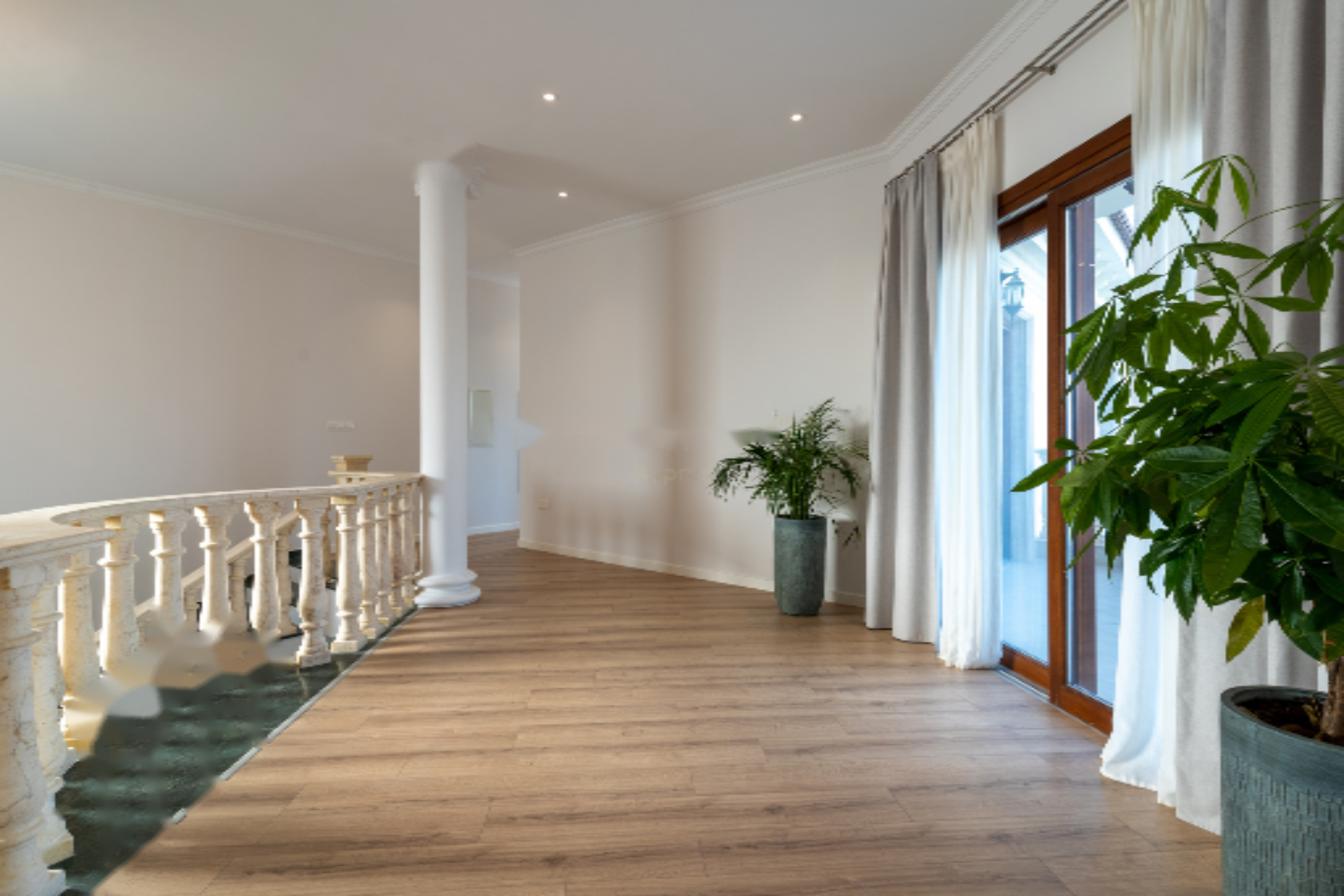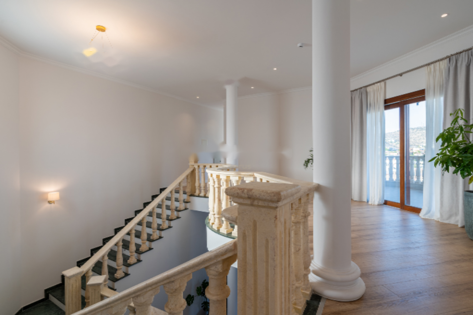 Установлены итальянские тканевые шторы, сауна, система нагрева пола и кондиционирование во всех зонах. Установлена система сигнализации и видеонаблюдения. Окна, двери и гардеробы из Ироко дерева. Две отдельных изготовленных на заказ кухни из цельного дерева, три зоны для ТВ, солевой бассейн и крытая парковка.