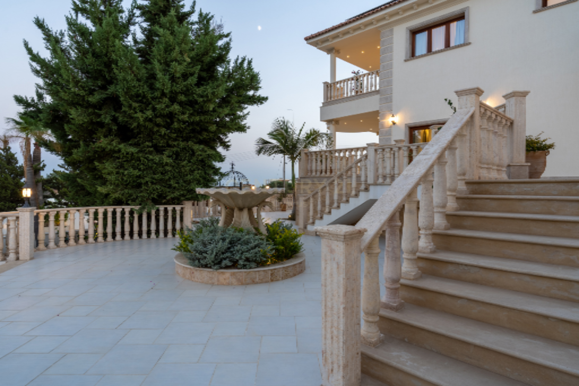 ✅ Интерьеры украшены мрамором, мозаикой и гранитом. Фасады сделаны из мрамора и натурального камня. В ванных комнатах установлена итальянская плитка высшего качества. Особняк также включает спальню для прислуги.