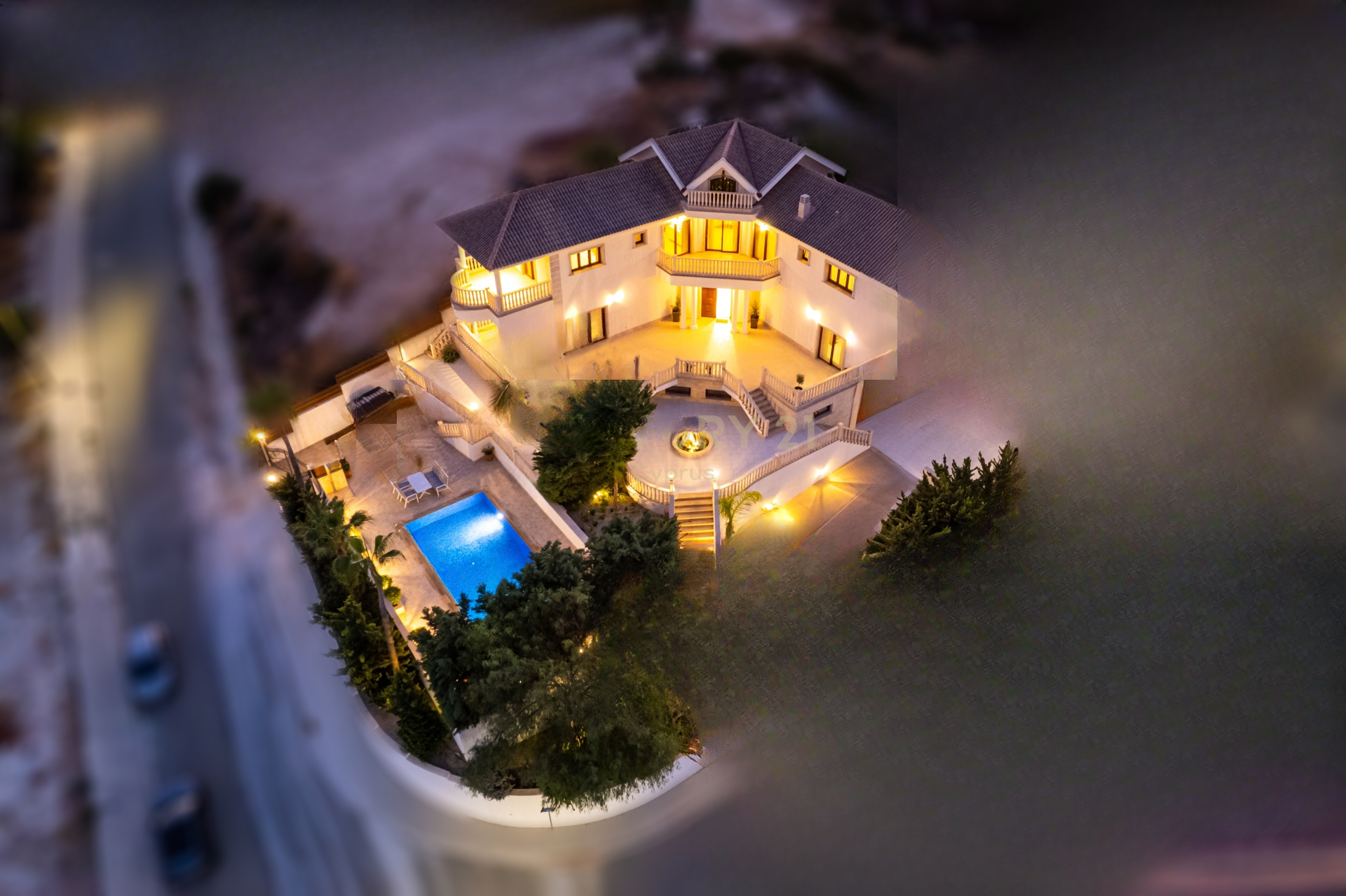 Гордый центральный элемент сада — ручной работы фонтан, рядом беседка из камня и мрамора и оборудован спортивный зал. Частный чердак и солнечная фотоэлектрическая система полностью покрывают все потребности дома в электроэнергии.