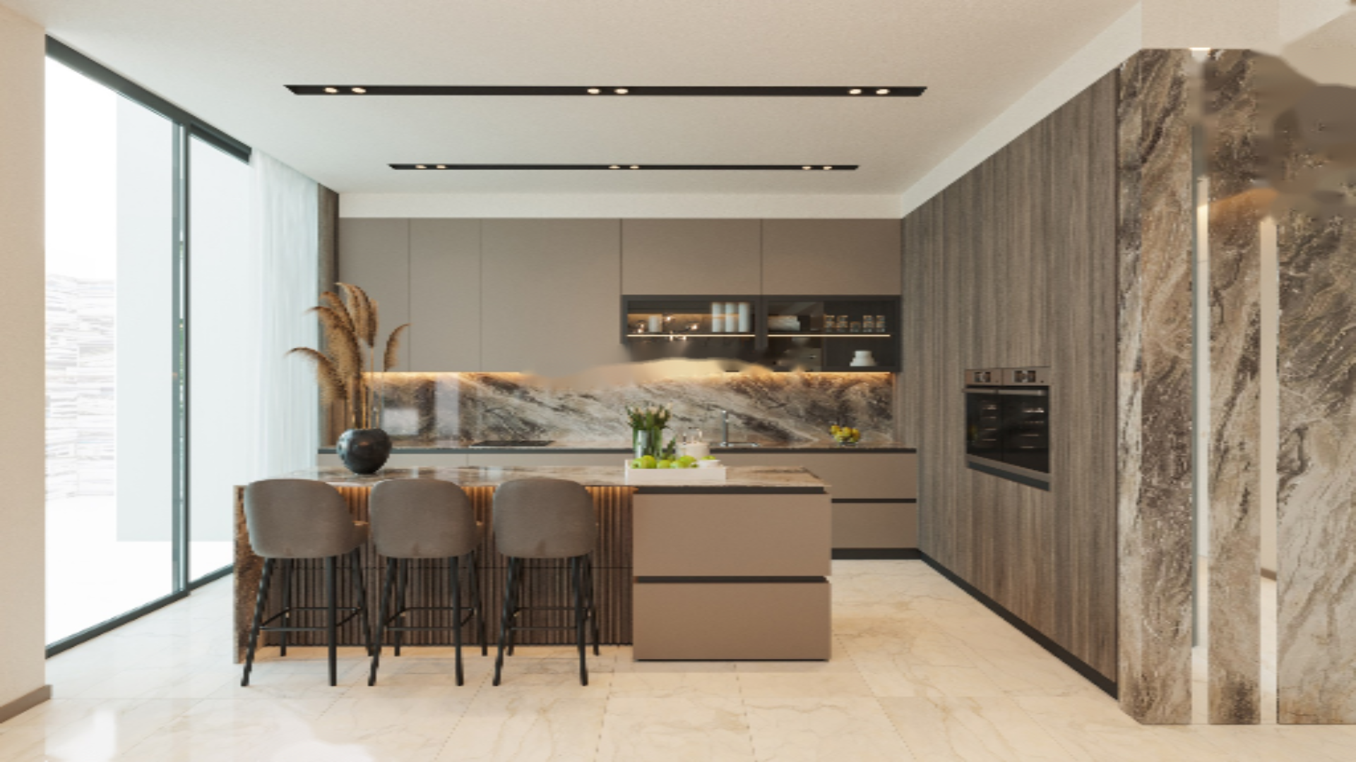 Внутри вы найдете тщательно продуманный план с рабочим кабинетом и кухней, совмещенной с гостиной. На первом этаже расположены три спальни с ванными комнатами, что обеспечивает уединение и комфорт всем жителям. Каждая спальня является самостоятельным укрытием, гарантирующим личное пространство для каждого.