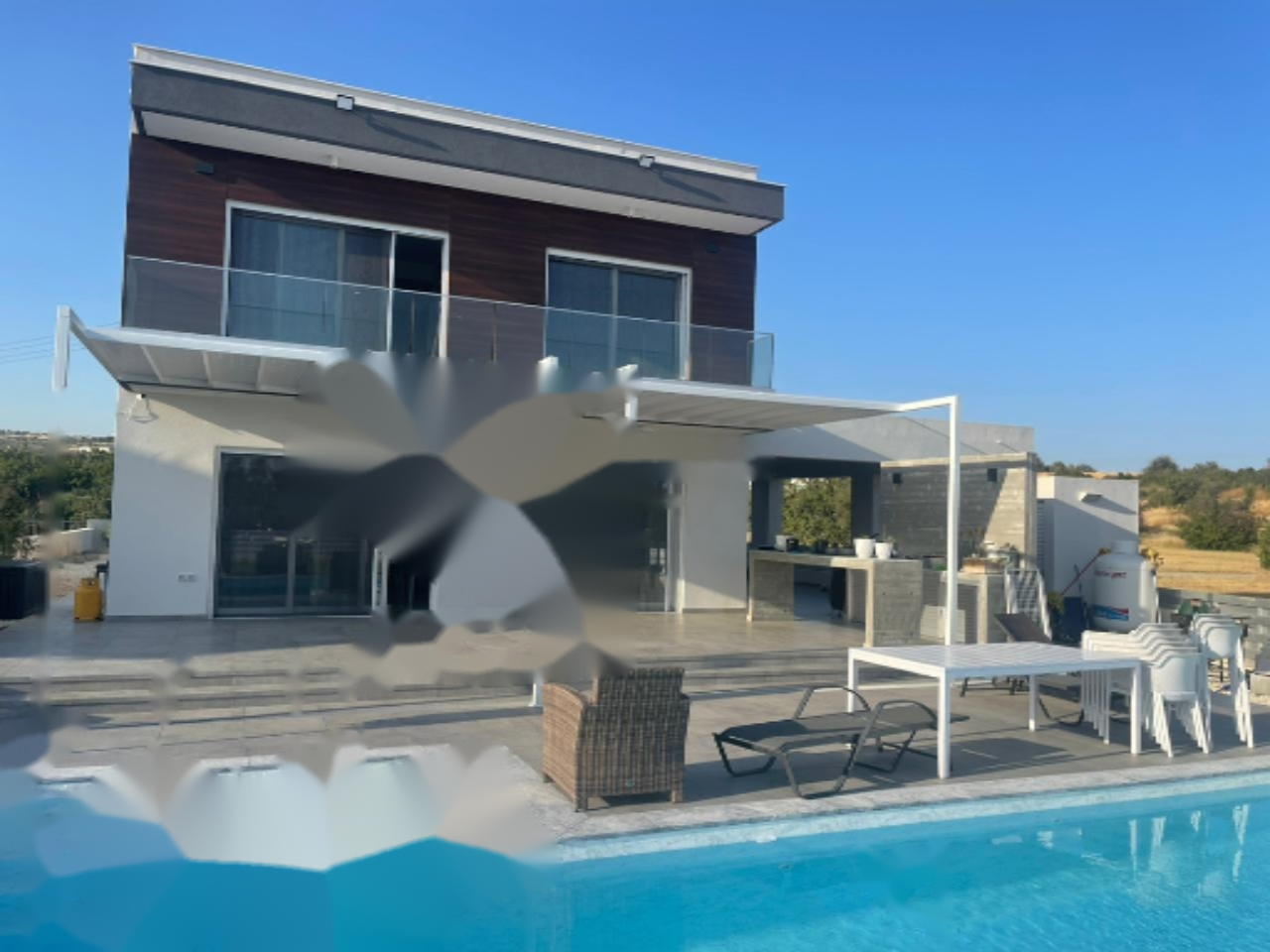 Открытое пространство восхитительно: частный бассейн окружен противоскользящей плиточной террасой и 40-метровой плиточной верандой. Просторный сад, двойной гараж и встроенная барбекю-зона с раковиной и электророзетками делают этот дом по-настоящему привлекательным.