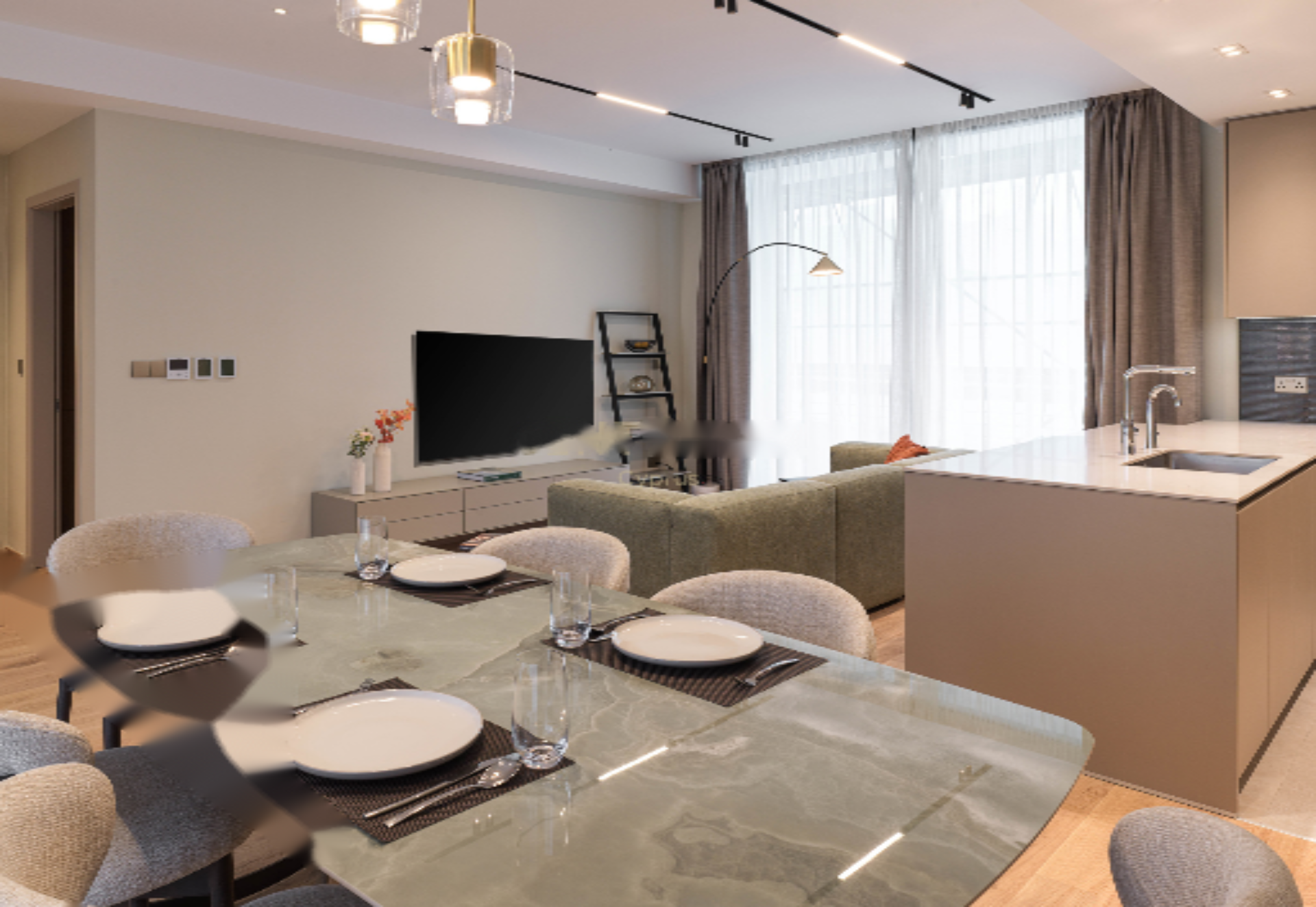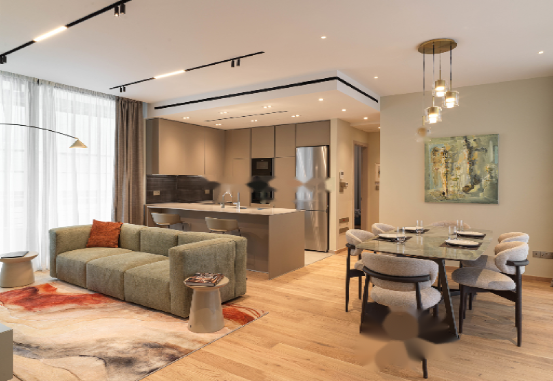 Квартира включает в себя две просторные спальни и две современные ванные комнаты, а также гостиную открытой планировки и полностью оборудованную кухню. Обеспечена личная крытая парковка. Везде установлены кондиционеры, и объект находится в отличном состоянии нового строительства.
