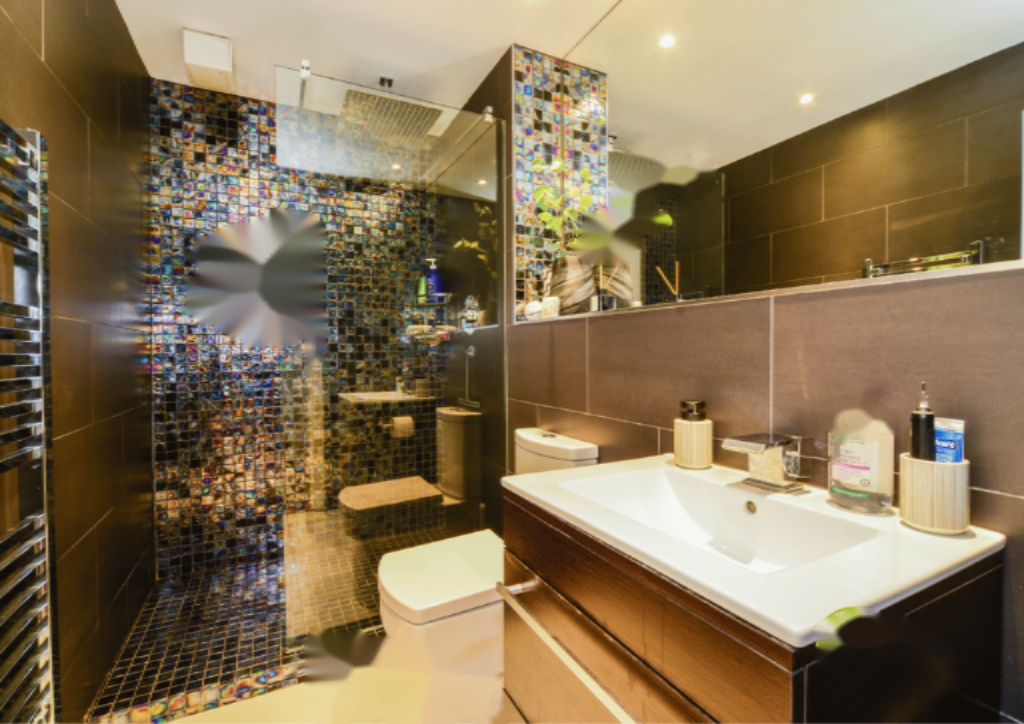 Продвигаясь по квартире, вы найдете стильную ванную комнату с тремя частями, с душем для накрахмаливания и современными элементами, придающими свежий, спа-подобный вид.