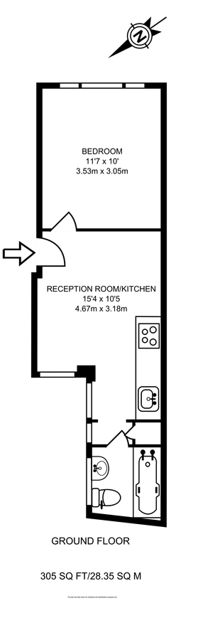 1 bed, 1 bath, 1 reception, 305 sq. ft;