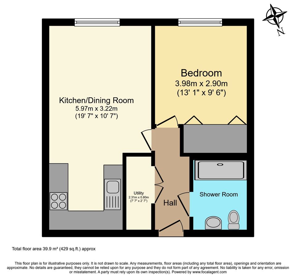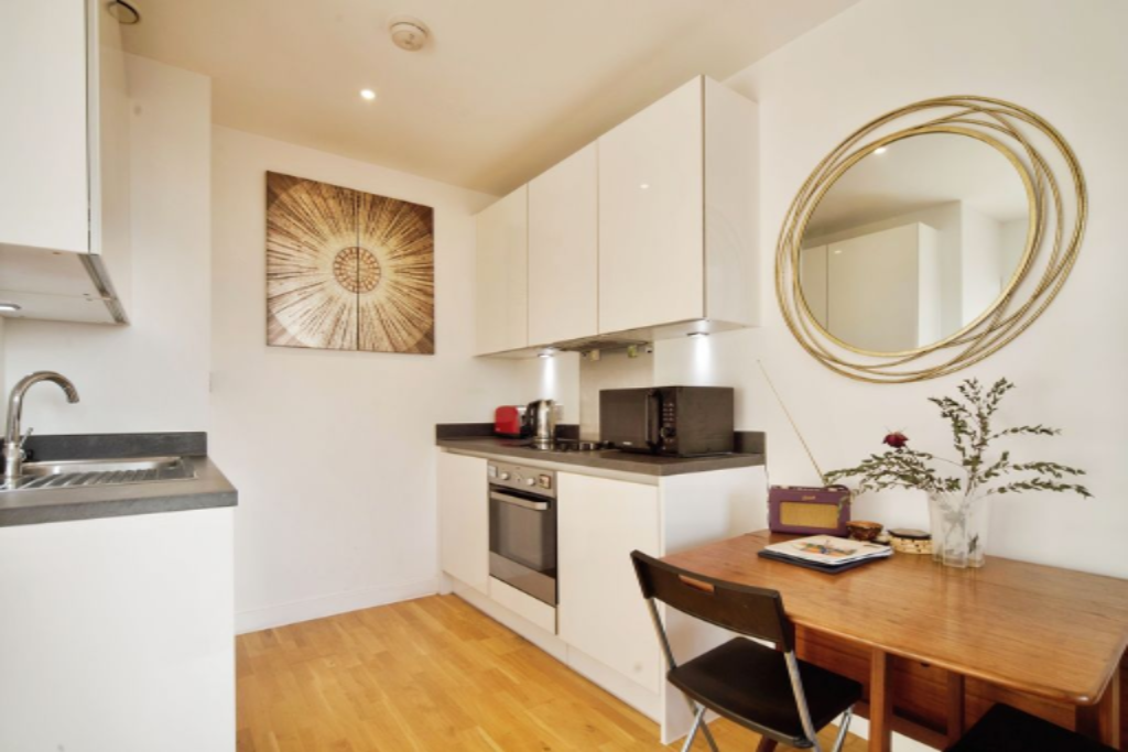 Жилье включает в себя прихожую со встроенными местами для хранения, ведущую в открытую зону для отдыха и обеденную кухню с достаточным местом как для отдыха, так и для обедов. Кухня оснащена современным рядом подходящих белых настенных и напольных шкафов с рабочими поверхностями, включая врезную раковину, электрическую плиту с вытяжкой и электрическую духовку, а также дополнительное место для бытовой техники. В квартире есть просторная спальня с вместительными встроенными шкафами и душевая с современной сантехникой.