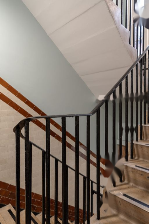 Обзор помещения: Общественные лестницы ведут на первый этаж, где и находится эта квартира, и выше, с оригинальной плиткой кремового и оранжевого цветов, подступающей к лестнице. Внутренние пространства плавно соединяются к востоку и западу. Уютные окна над дверями позволяют свету проникнуть в квартиру через восстановленные оконные рамы. На восточной стороне оригинальные деревянные полы были восстановлены и сохранены в их первоначальном состоянии.