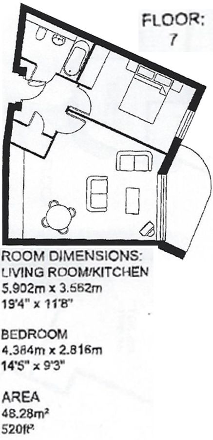 1 bed, 1 bath, 1 reception, 520 sq. ft