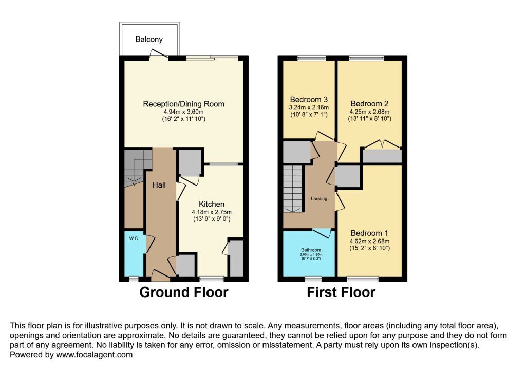 3 beds, 1 bath, 1 reception, EPC Rating: D