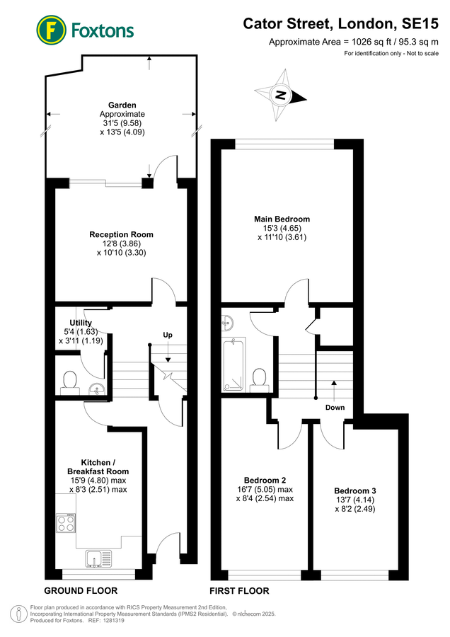 3 beds, 1 bath, 1 reception, 1,026 sq. ft;