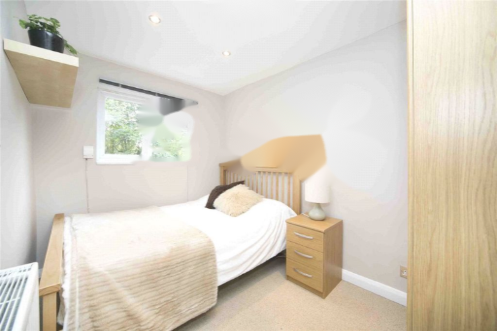 Спальня уютная и пропорциональная, предоставляет достаточно места для шкафов и дополнительной мебели. В планировку также входит ванная комната. Квартира расположена с тыльной стороны здания и открывает вид на спокойный сад. Впереди стоит красивая зрелая липа.