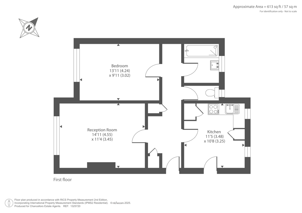 1 bed, 1 bath, 1 reception, 613 sq. ft, EPC Rating: C